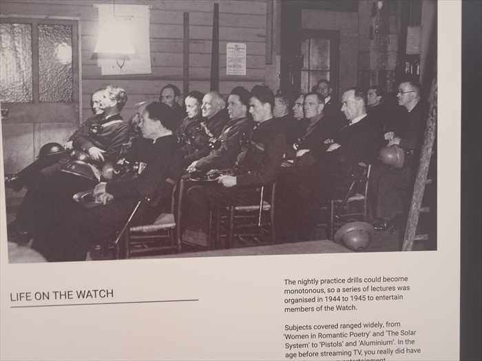 「The nightly practice drills could become monotonous, so a series of lectures was organised in 1944 to 1945 to entertain members of the Watch.