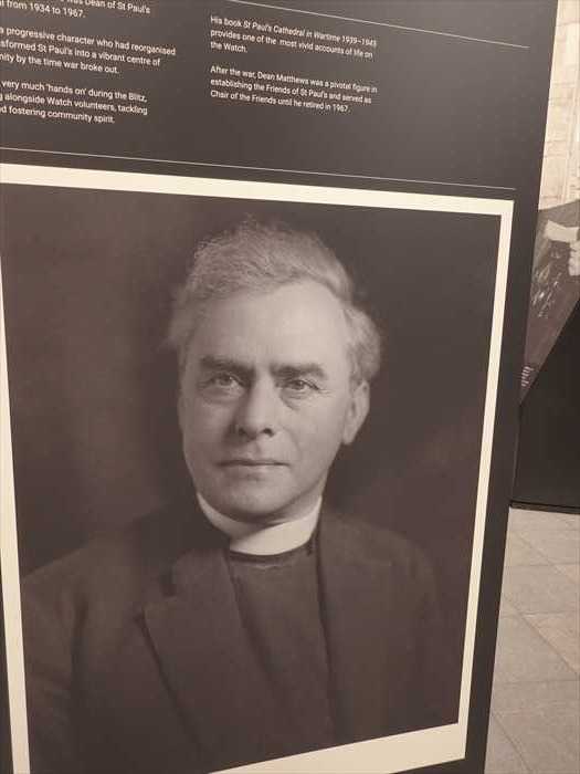 After the war, Dean Matthews was a pivotal figure in establishing the Friends of St Paul’s and served as Chair of the Friends until he retired in 1967.」
