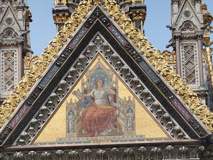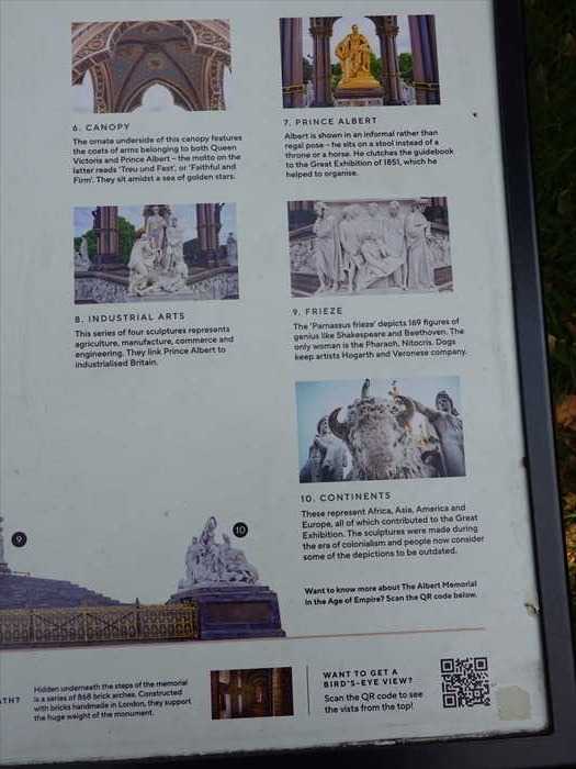 アルバート記念碑(Albert Memorial)の解説板の中央部分に近づいて。