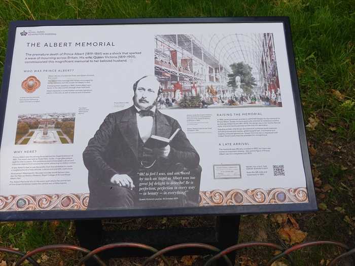 The memorial was designed by George Gilbert Scott and unveiled in 1872. The location was chosen for its line of sight across to the Royal Albert Hall, creating an enduring visual connection between the two monuments.」