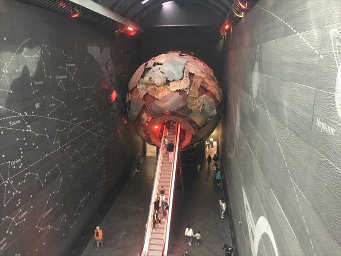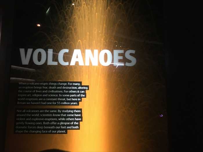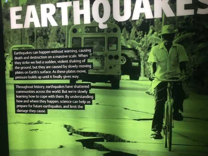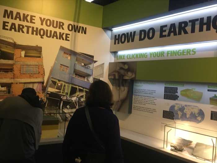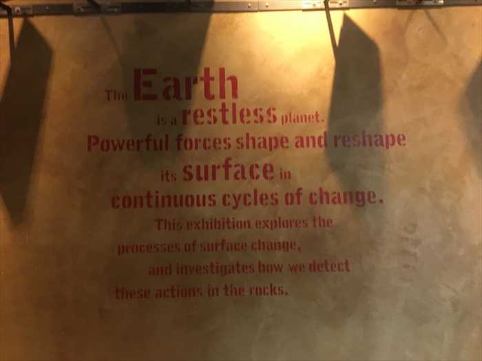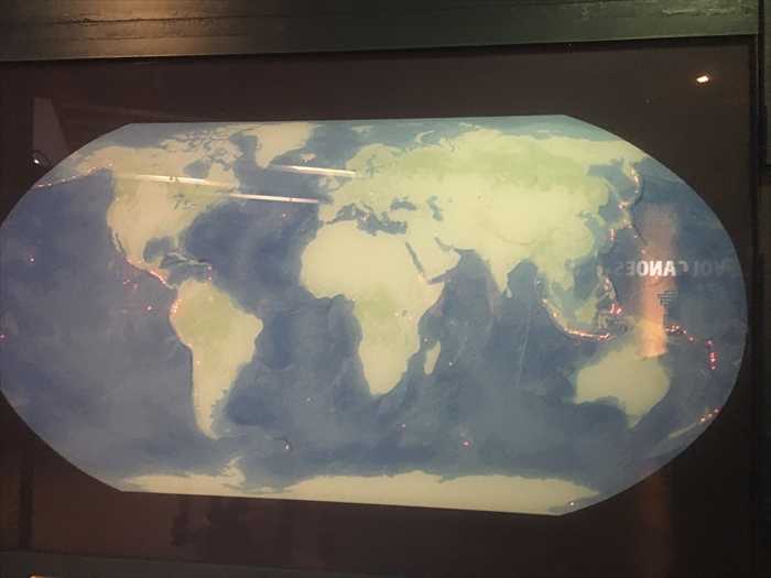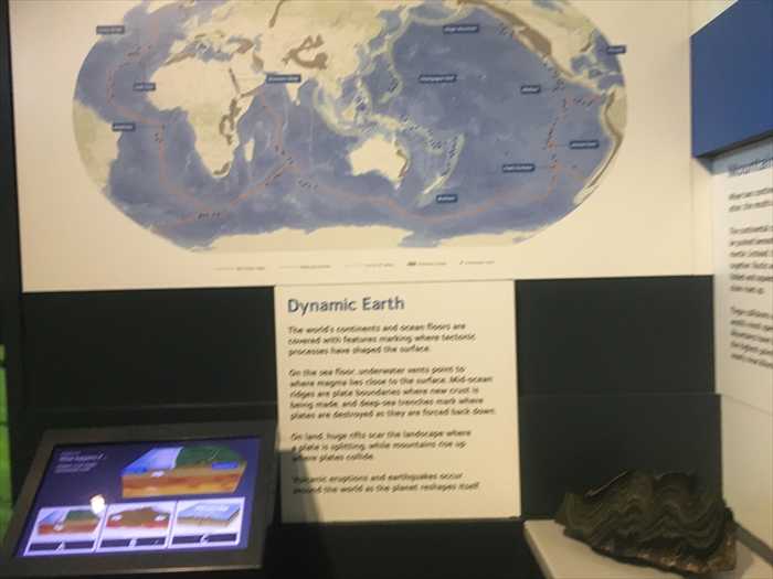 「Volcanoes and Earthquakes(火山と地震)」ギャラリーの展示の一部で、 プレートテクトニクスと地球のダイナミズム を説明するコーナー。