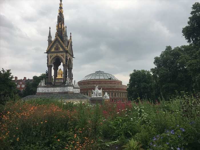 再び、ロンドンのケンジントン・ガーデンズにある「アルバート記念碑(Albert Memorial)」、 そして奥に見える円形の大きな建物は「ロイヤル・アルバート・ホール(Royal Albert Hall)」 。