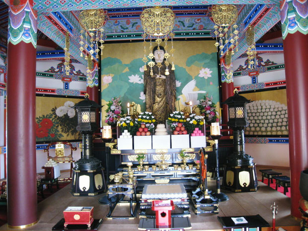 堂内には、大山忠作画伯の壁画が6面に渡り描かれており、聖徳太子像が奉安されています。