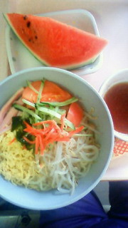 お昼は、なんと冷し中華とスイカです。結構大盛り。