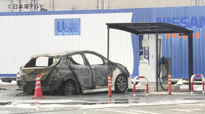 リーフなんですかね。。。日本車で、日本でも起こるんですね自動車販売店の急速充電設備で火災 充電中の電気自動車が全焼 出火原因を調査 鳥取県倉吉市2月24日、鳥取県倉吉市で、電気自動車の充電設備で充電していた車から、出火し全焼する車両火災がありました。この火事によるけが人はいませんでした。中本帆乃花 記者「電気自動車の充電設備の傍にあるあちらの車。黒く焼け、焦げた匂いが漂っています」24日午前8時半ごろ、倉吉市の自動車販売店の敷地内で、倉吉市に住む介護士の男性が、電気自動車専用の急速充電設備で自分の車を充電中に、足元から煙が出ているのに気づき、警察に通報しました。火は約1時間後に消し止められましたが車は全焼。充電設備にも熱でパネルの一部が溶ける被害がありました。警察によりますと、出火したのは国産車だということです。男性にけがはありませんでした。警察が出火の原因などを詳しく調べています。
