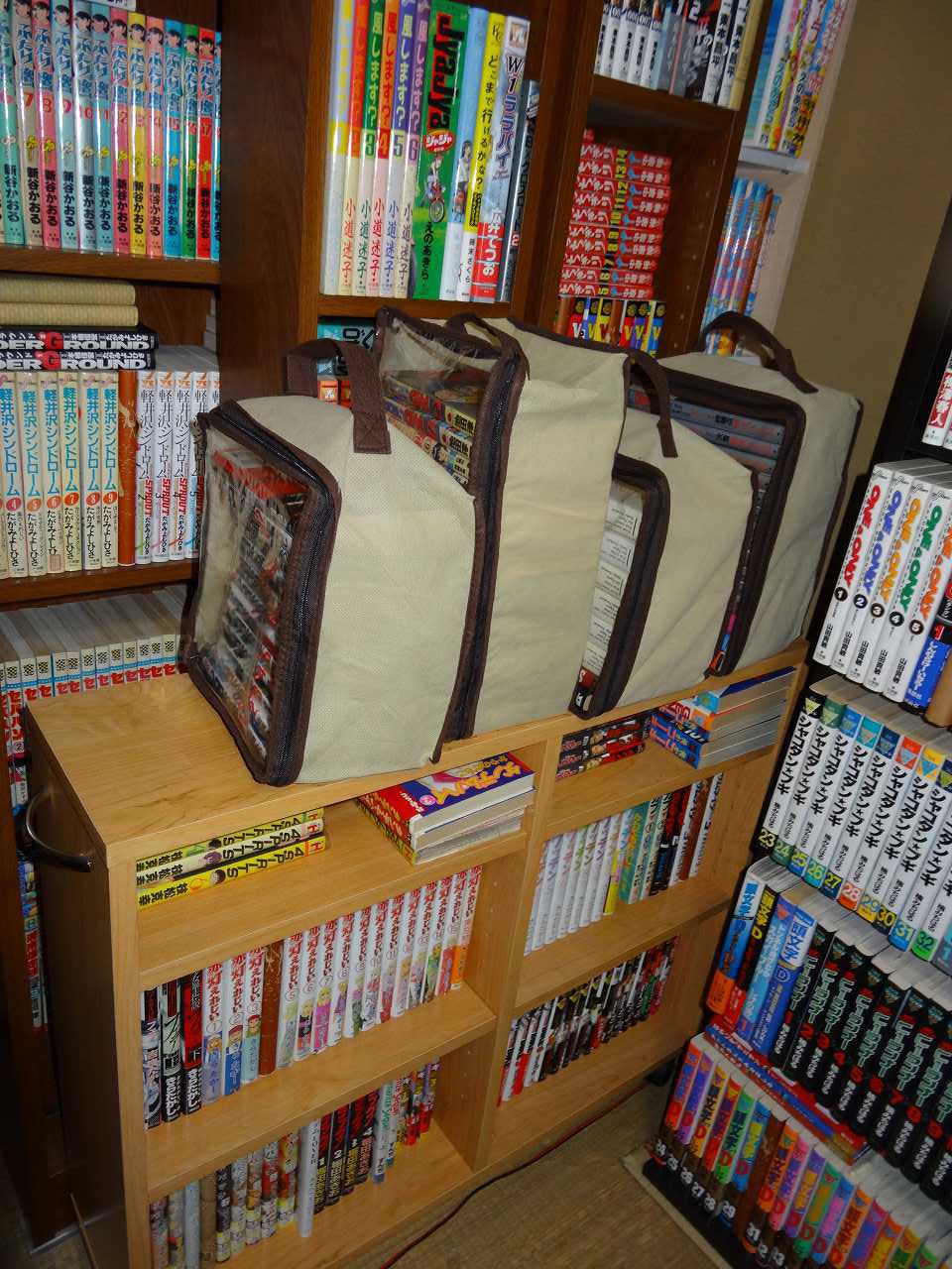 ベッドの上に置いたままになってた、段ボール箱6箱くらいの漫画を、なんとか入れました。。。