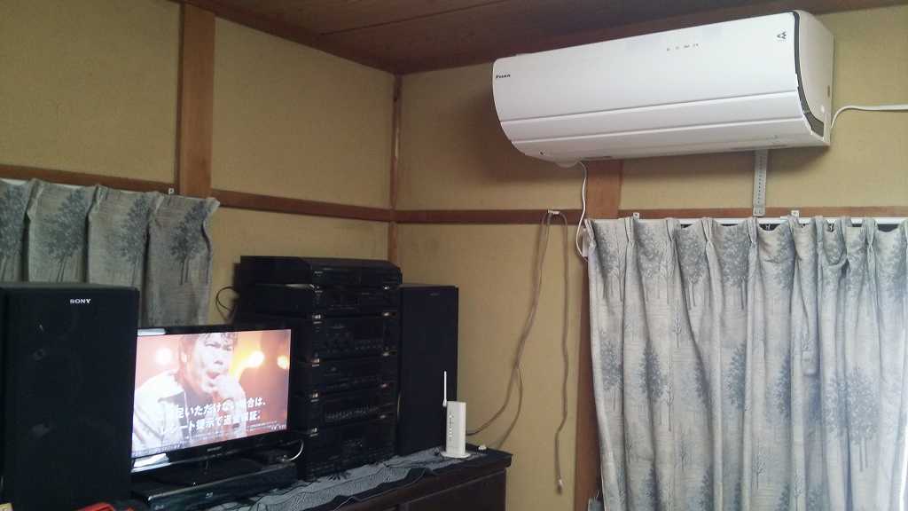 仕事の予定もないのに、お金が無いので、冬ボー一括で買ったエアコンの取り付け
