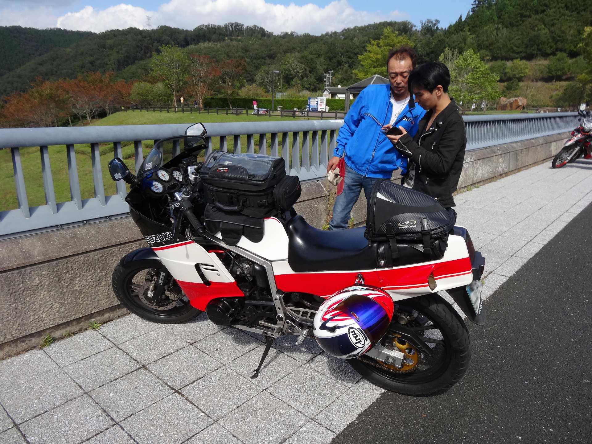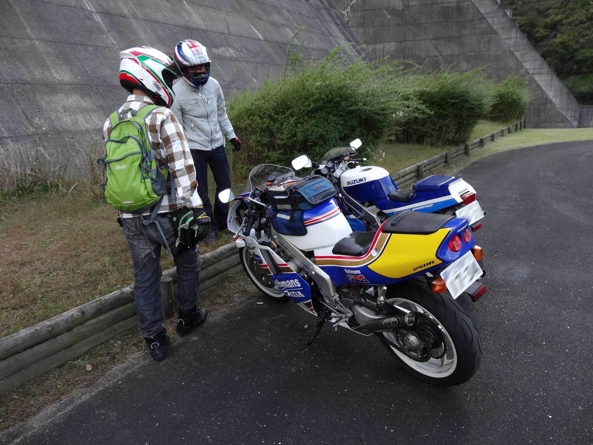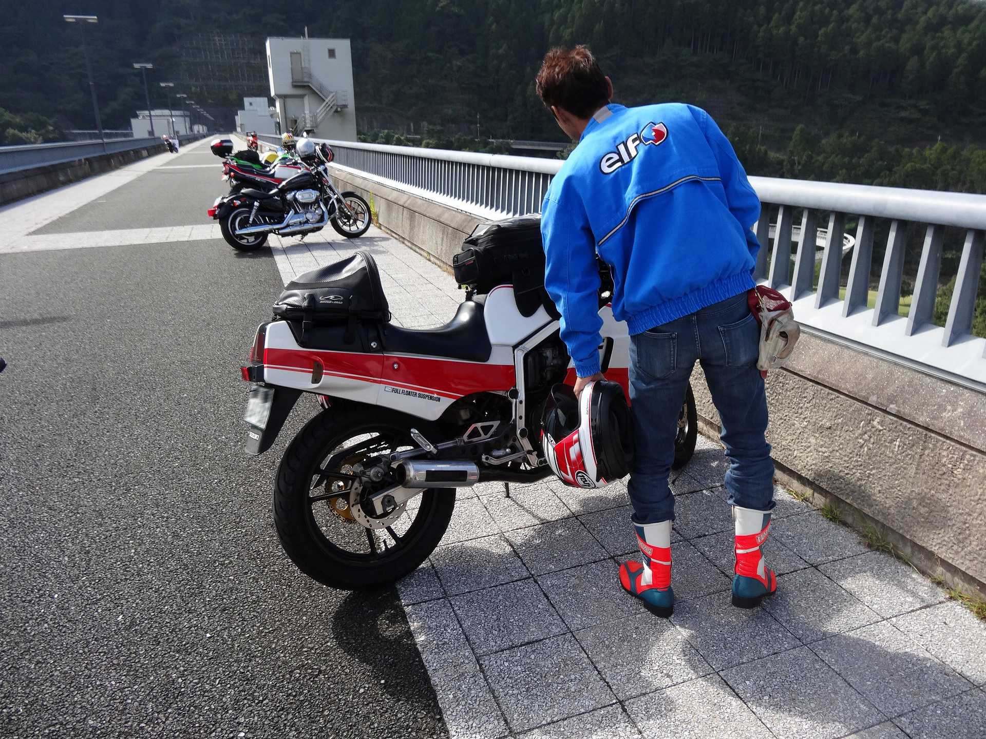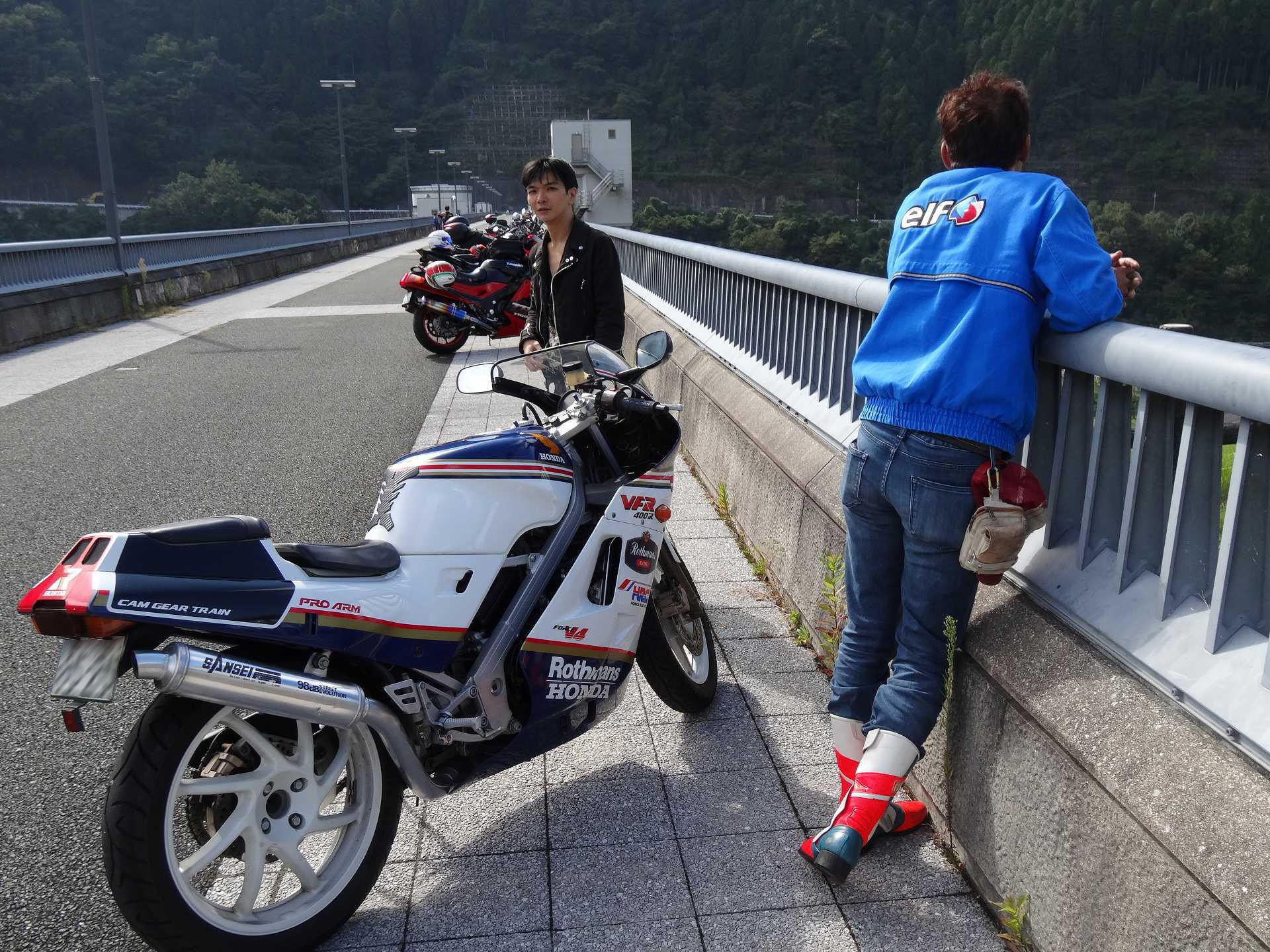 ヤングマシン写真撮影のため、ダムの上のGSX-Rを取りに行き、トイレに行って、夜勤のコミーさんと別れるはずが、トイレに行く途中、VFRの方に声をかけて、いっしょに撮影に行くことに