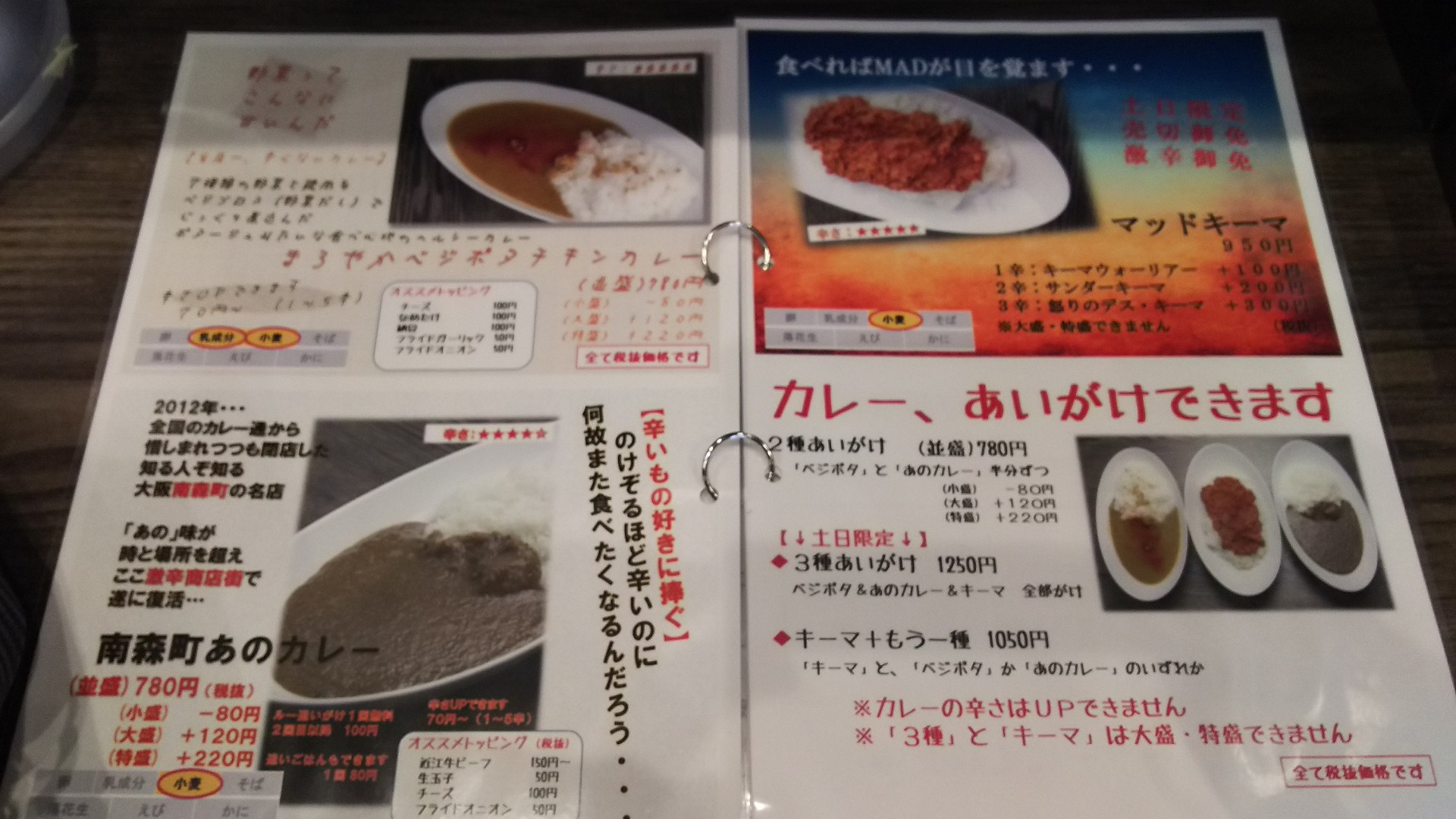 あっ、開店時のメニューとちょっと変わってる。。。辛さが、一ランクずつ上がってるのかな??