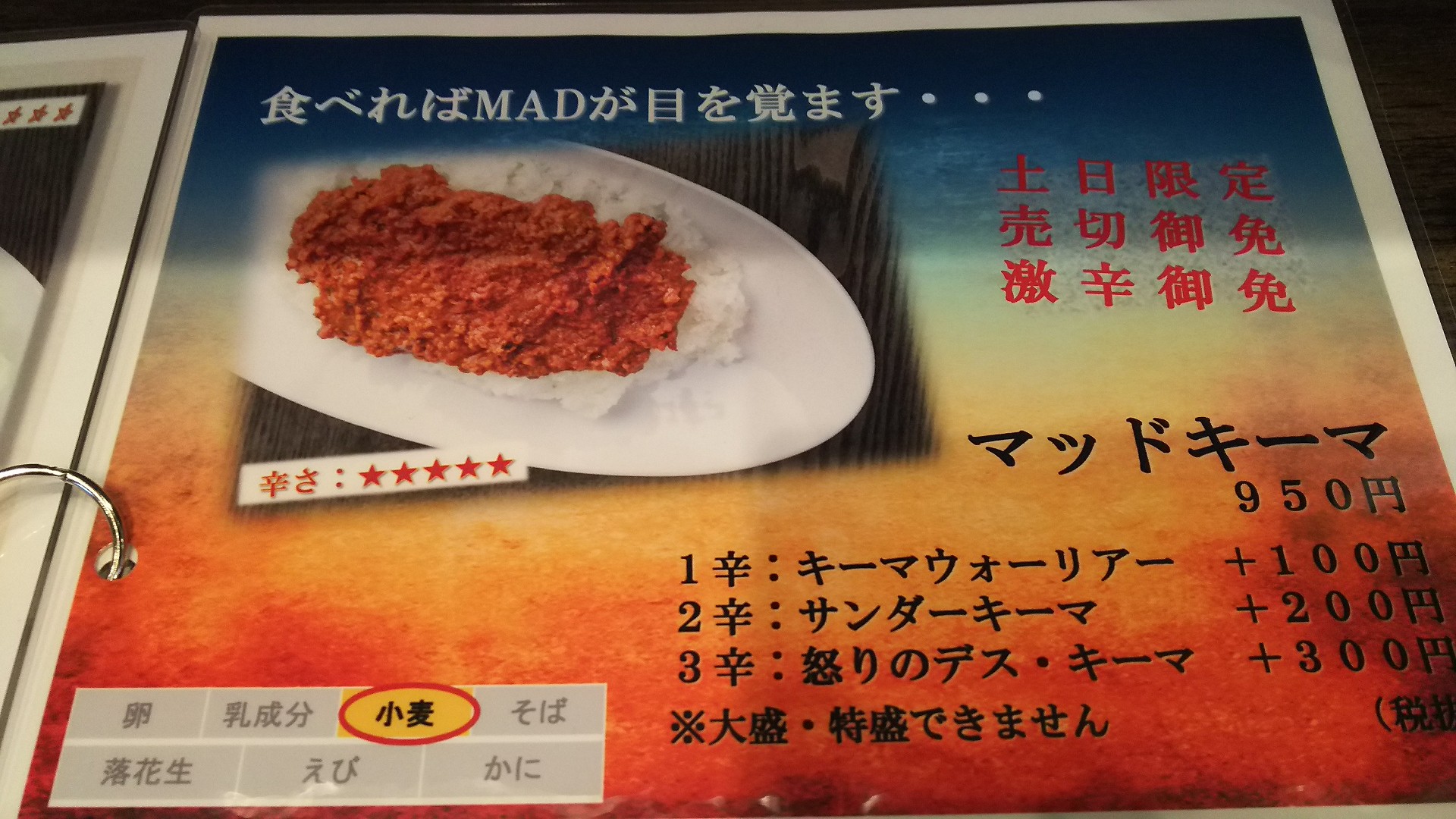週末、夜営業始めてたな。。。それに、土日限定で、マッドキーマ始めたと。。。