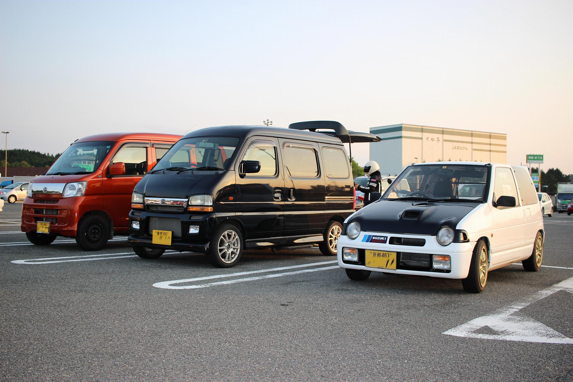すぐに、この軽バンだってわかりますね。じゃじゃ馬のステッカー貼ってらるし。。。