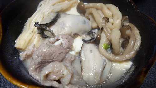 国産豚バラ肉と、広島産牡蠣がプリプリで美味しい。