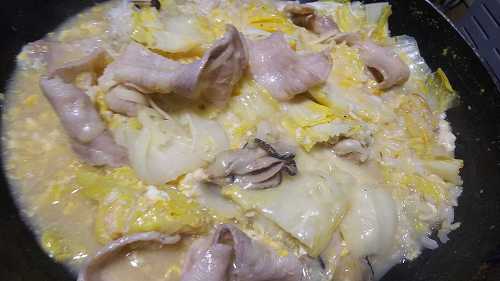 昨晩の鍋の残りに、具を追加して、玉子とチーズ加えて