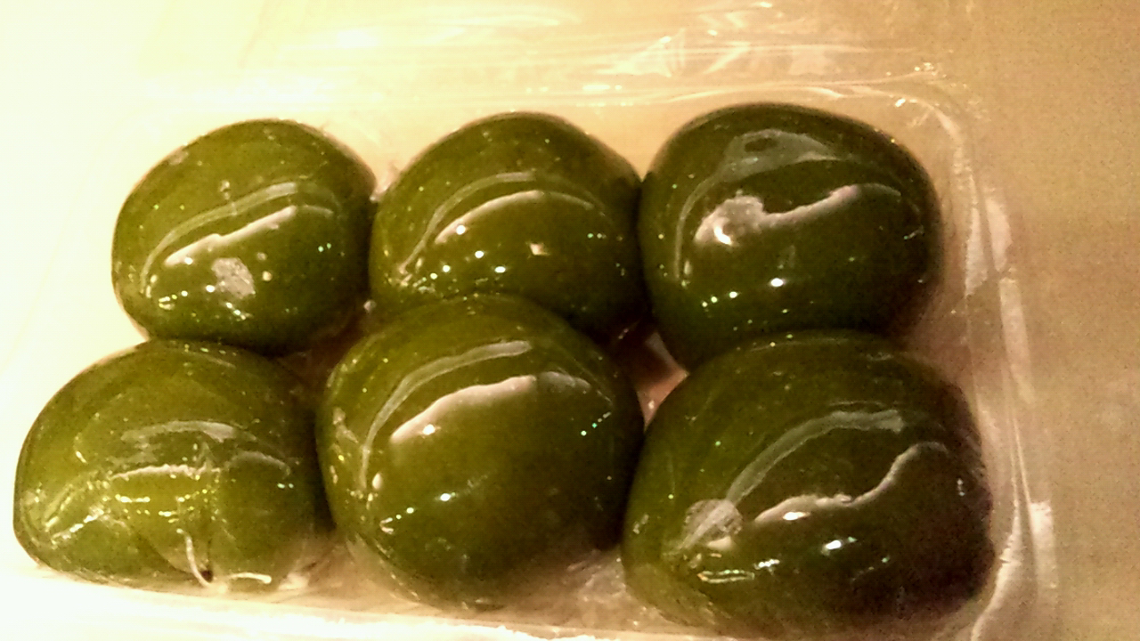 この草饅頭がおいしい!ラップにくるんであります。二個もらったのですが、他を食べ過ぎて、日本に帰ってから食べたら、硬くなってました。。。