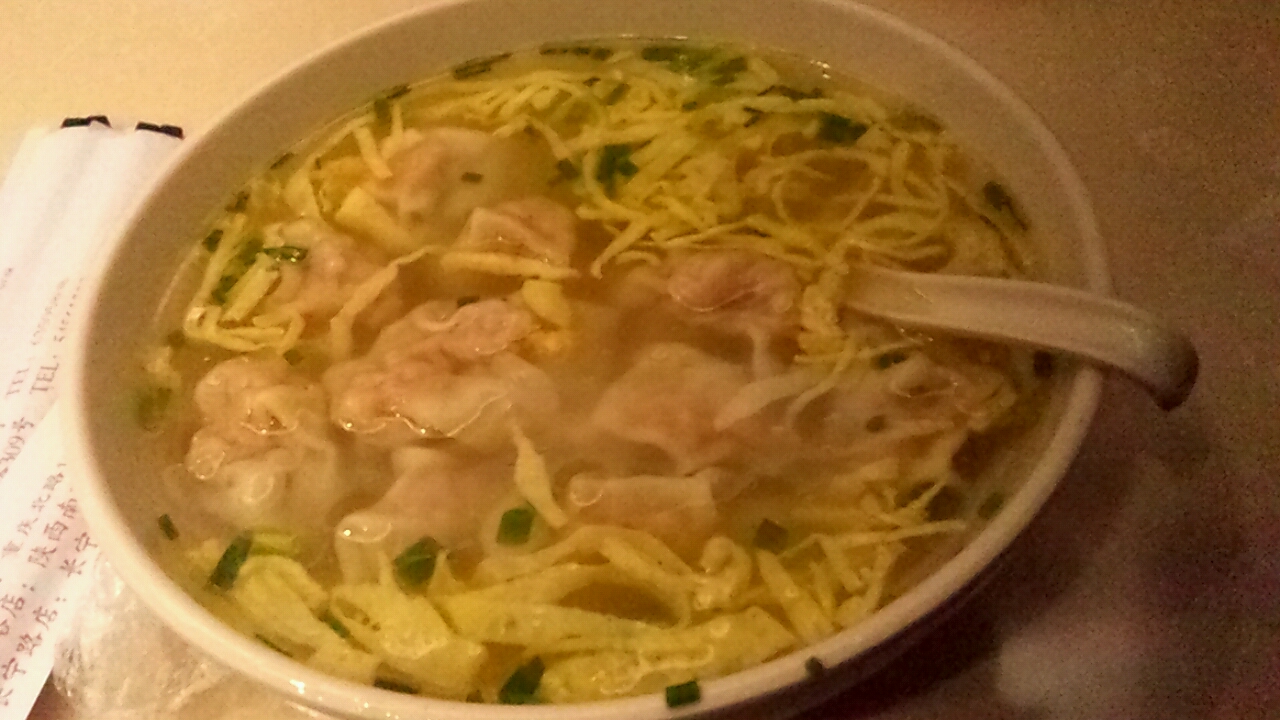 ワンタンです。おいしかったです。でも、すでに腹いっぱいで、泣きそう。。。けっこう量あるんです。