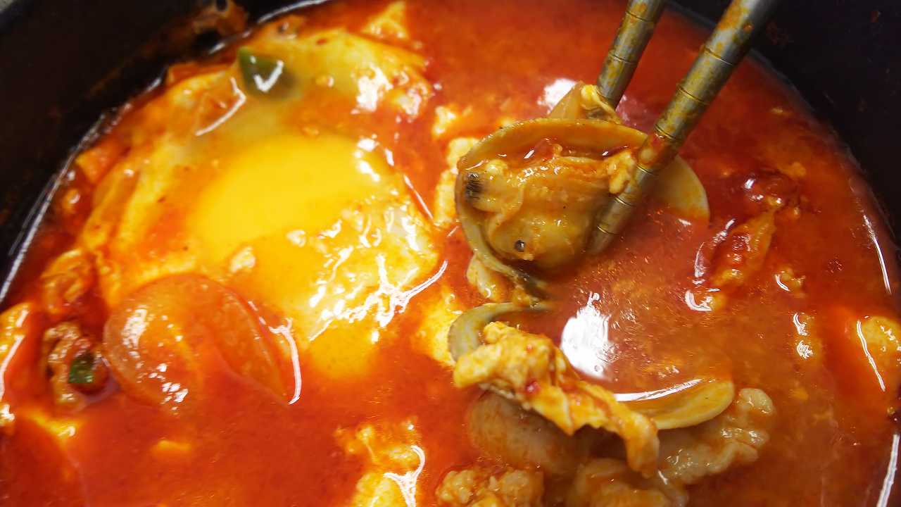 来来家、豚スンドゥブに、アサリ入れてもらいました!