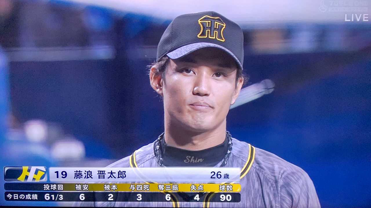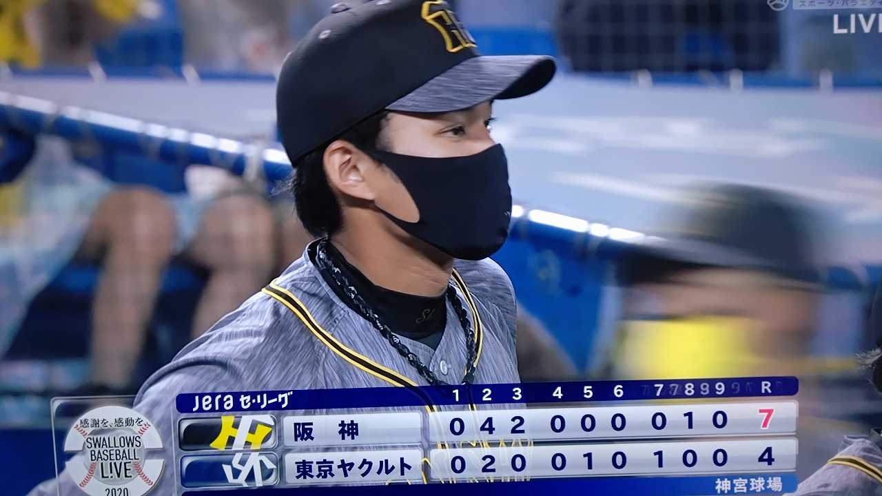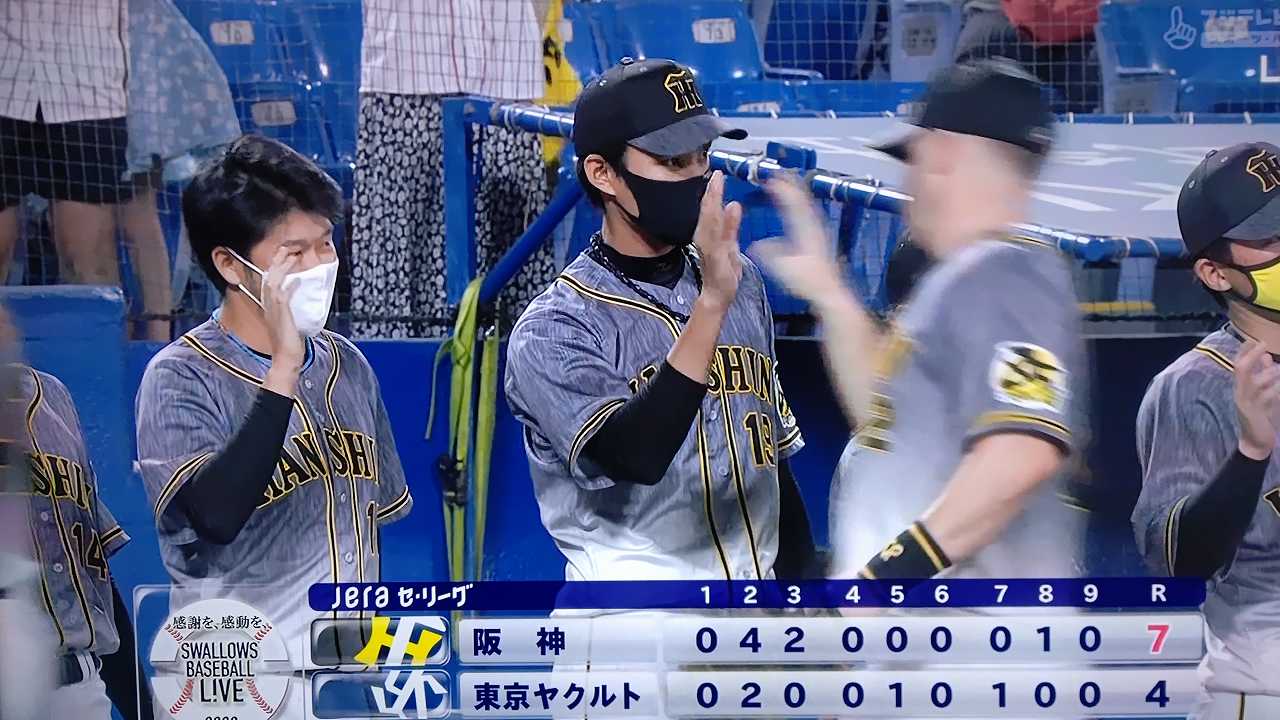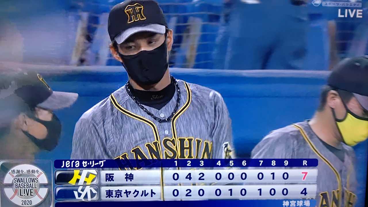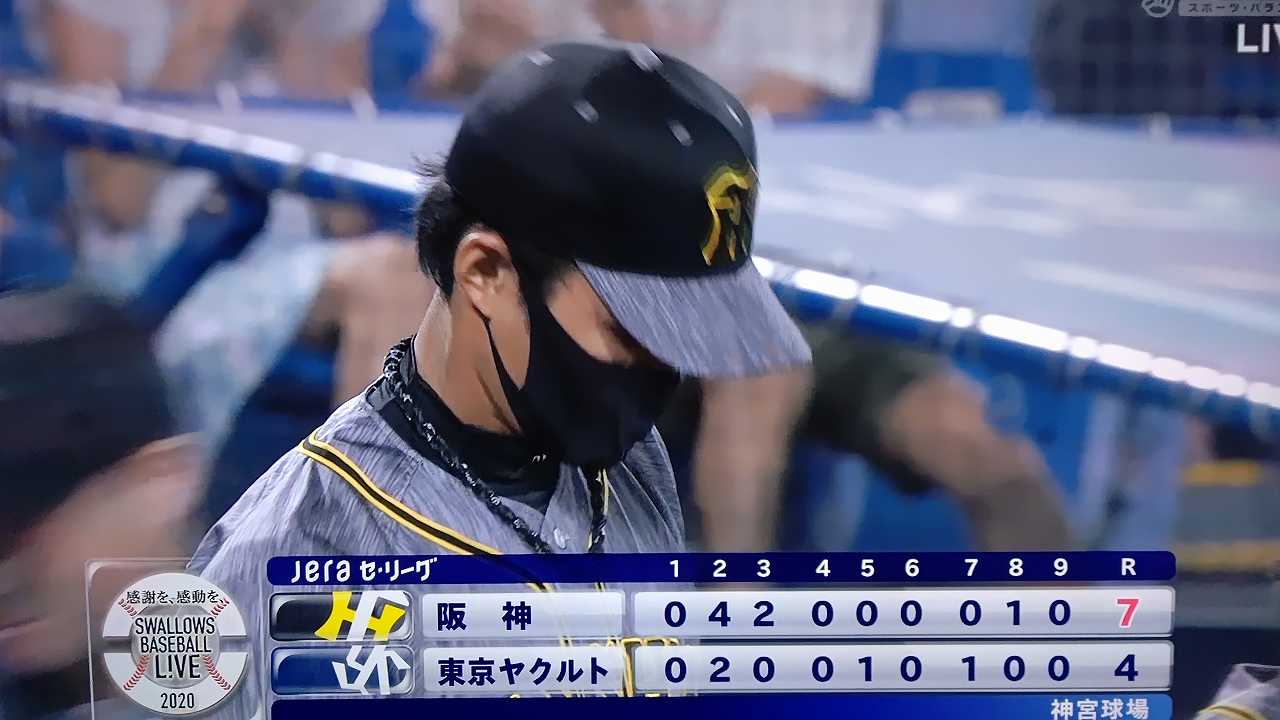 藤浪は3回4回と走者を背負いながらも凌いでいたが、5回裏一死から4番 村上に変化球を打たれ、逆方向のレフトへ運ばれる9号ソロアーチを許し6対3となる。ヤクルトは5回から中尾が2イニングを1安打無失点。7回表は3人目・大下が3者凡退に抑えて阪神の追加点を許さない。