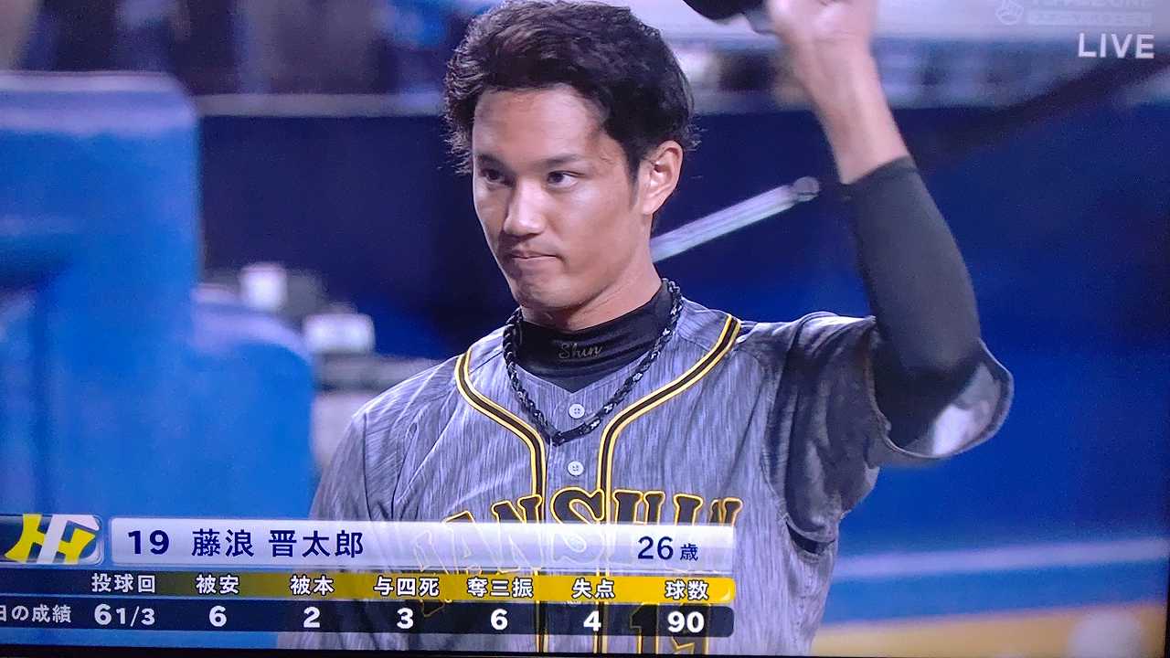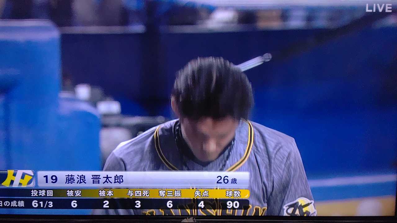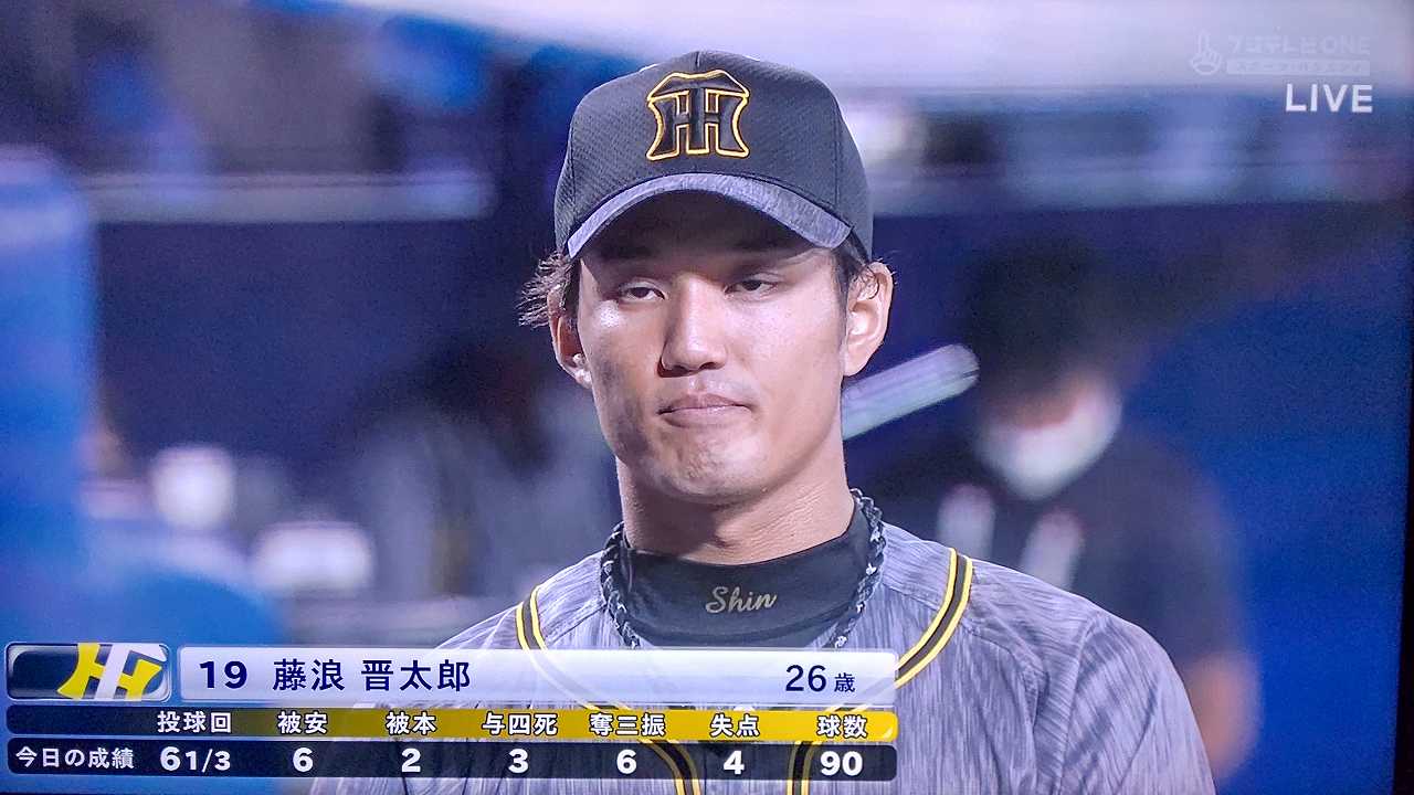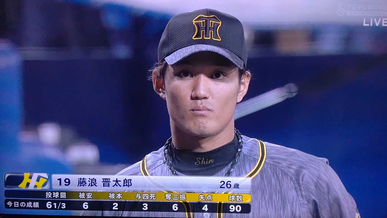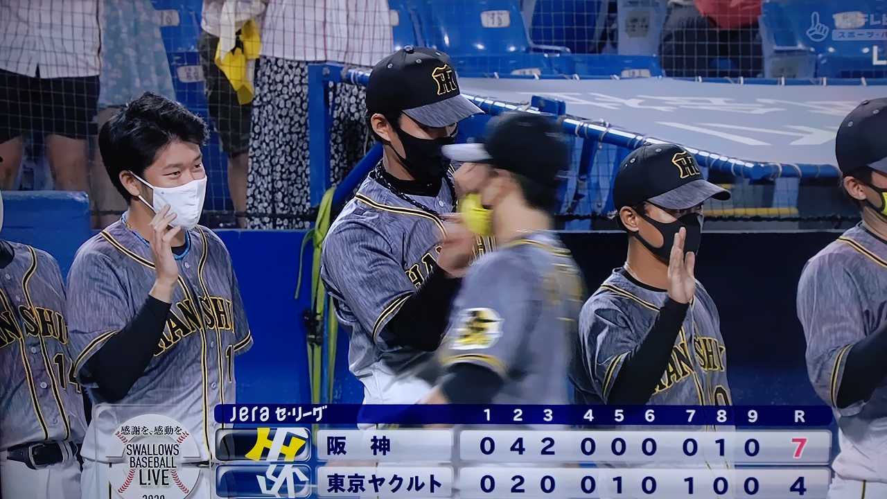 藤浪は3回4回と走者を背負いながらも凌いでいたが、5回裏一死から4番 村上に変化球を打たれ、逆方向のレフトへ運ばれる9号ソロアーチを許し6対3となる。ヤクルトは5回から中尾が2イニングを1安打無失点。7回表は3人目・大下が3者凡退に抑えて阪神の追加点を許さない。