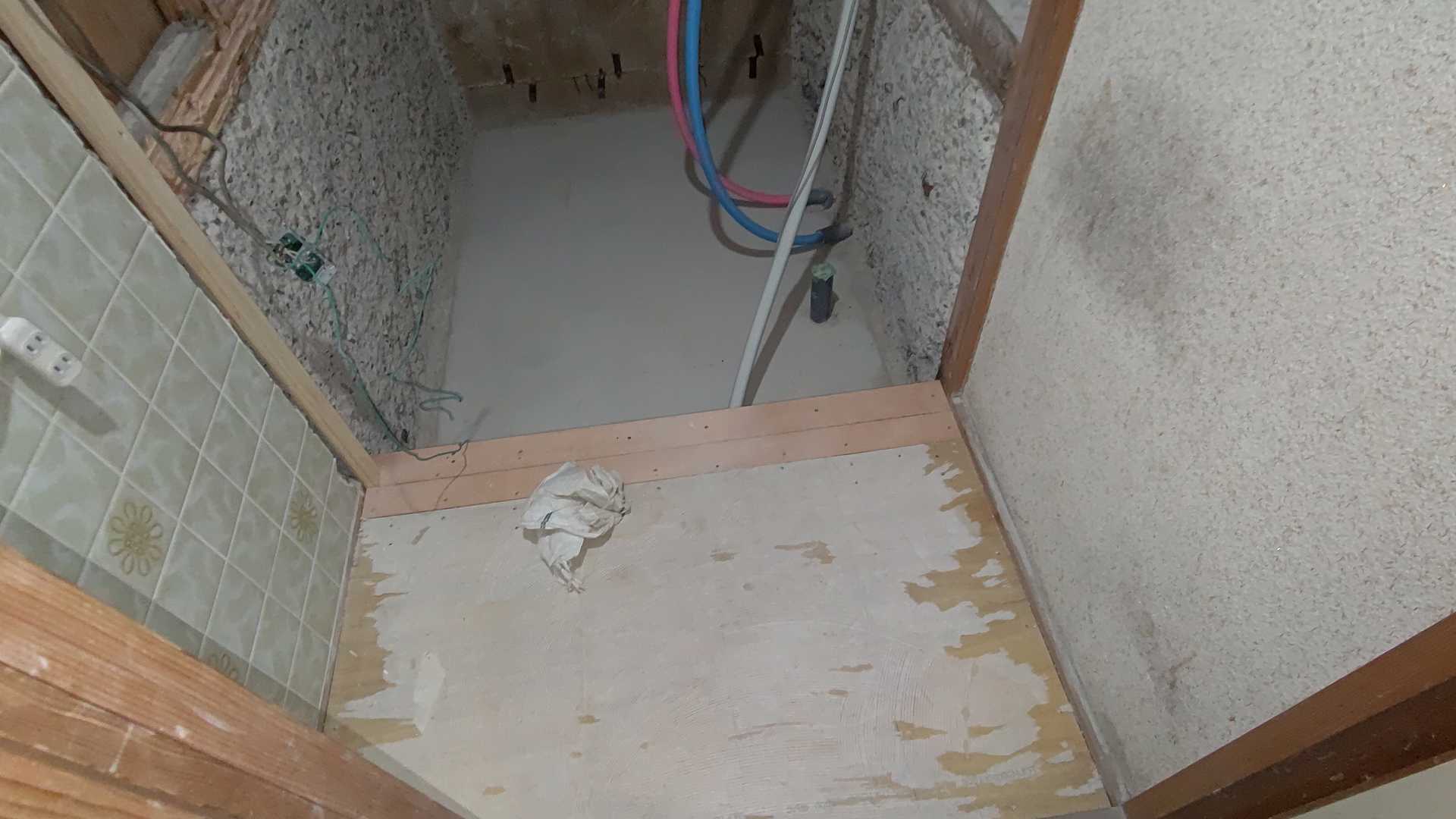 あと、洗濯機の下は、板はってある??