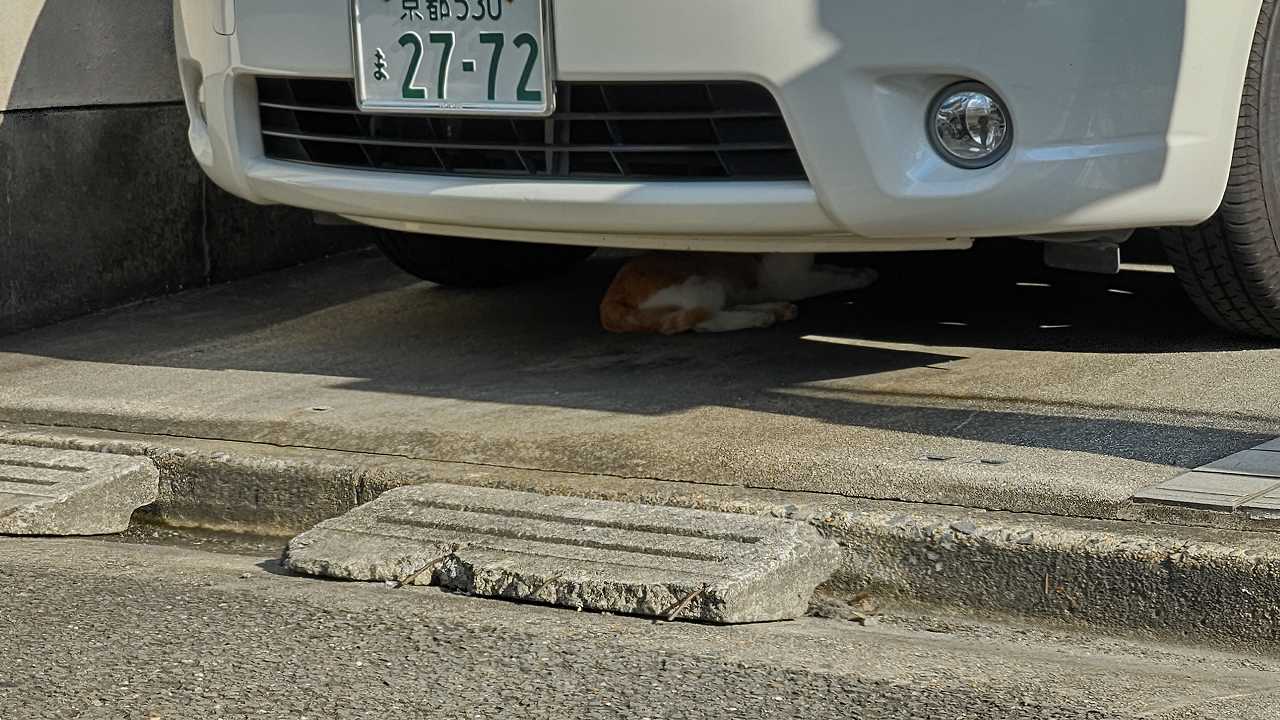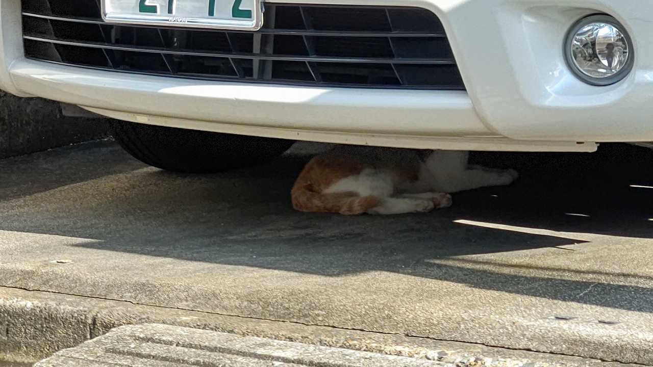 で買い物して、細い道歩いてると、後ろから、ちっこくて、丸っとした、白茶の猫ちゃんが、走ってって。。。