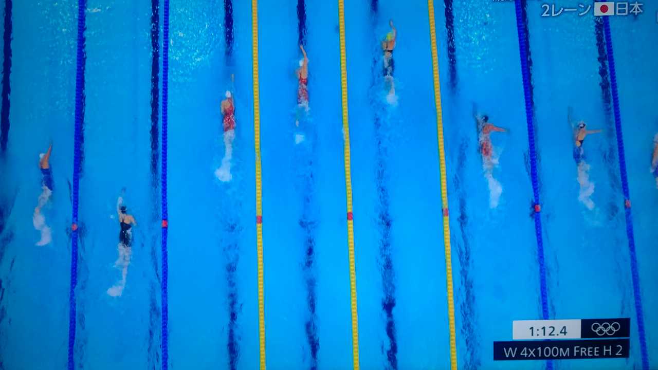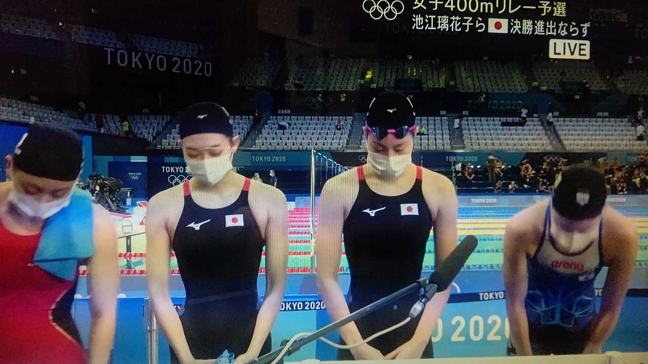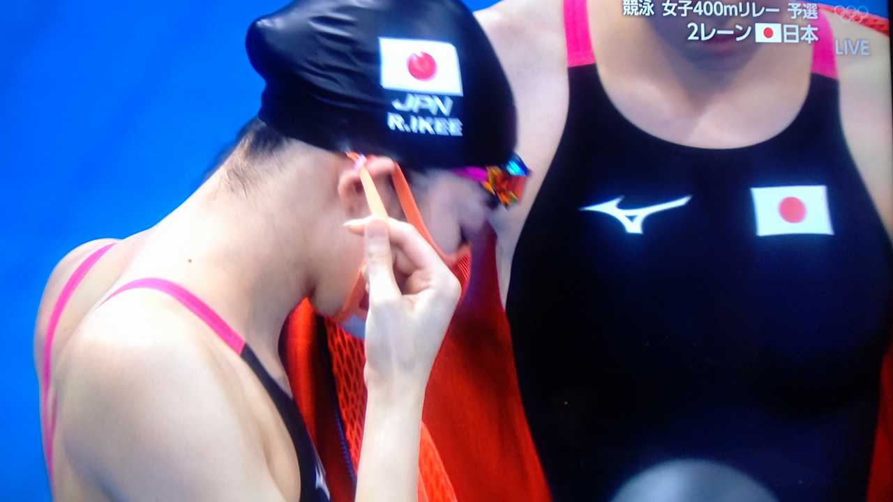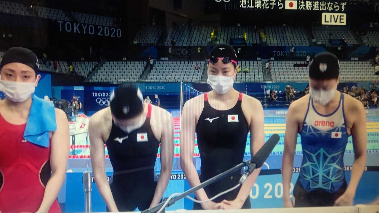 懐かしさがこみ上げる。スタート前、池江は五輪独特の空気を胸いっぱいに吸い込んだ。第2泳者として5番手でバトンを受けると、引き継ぎタイムながらチーム最速の53秒63で泳ぎ切った。日本記録に0秒03及ばず決勝進出も逃したが、表情は晴れやかだった。