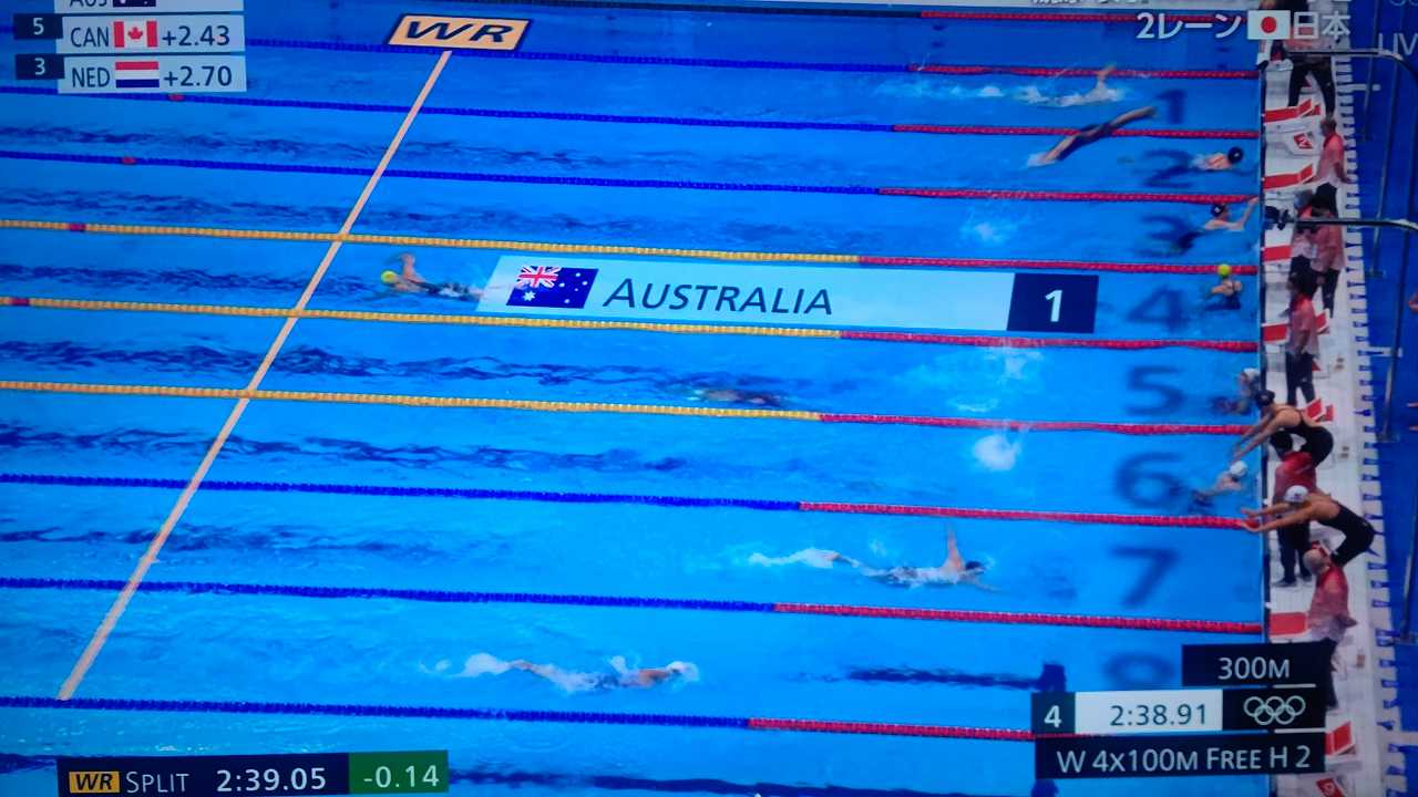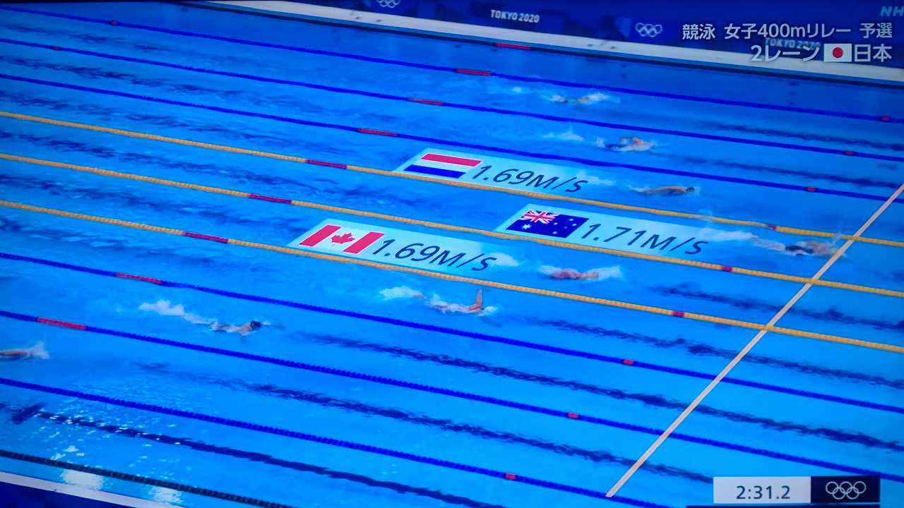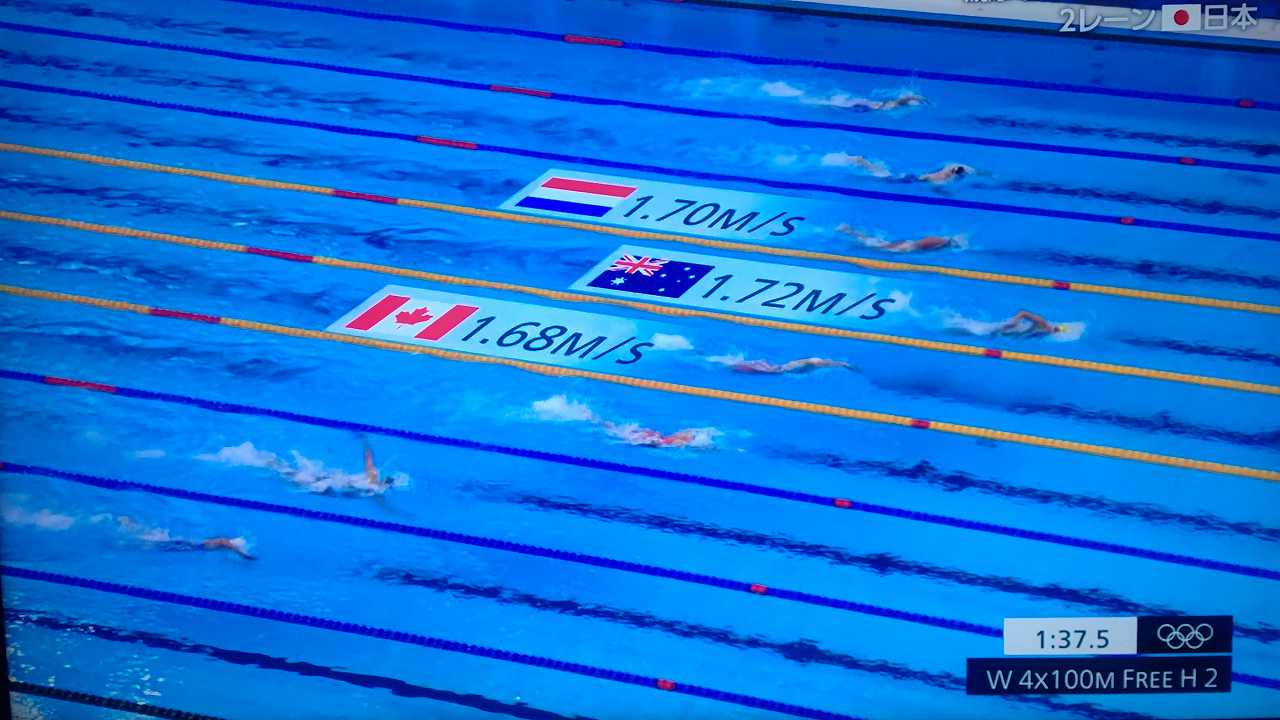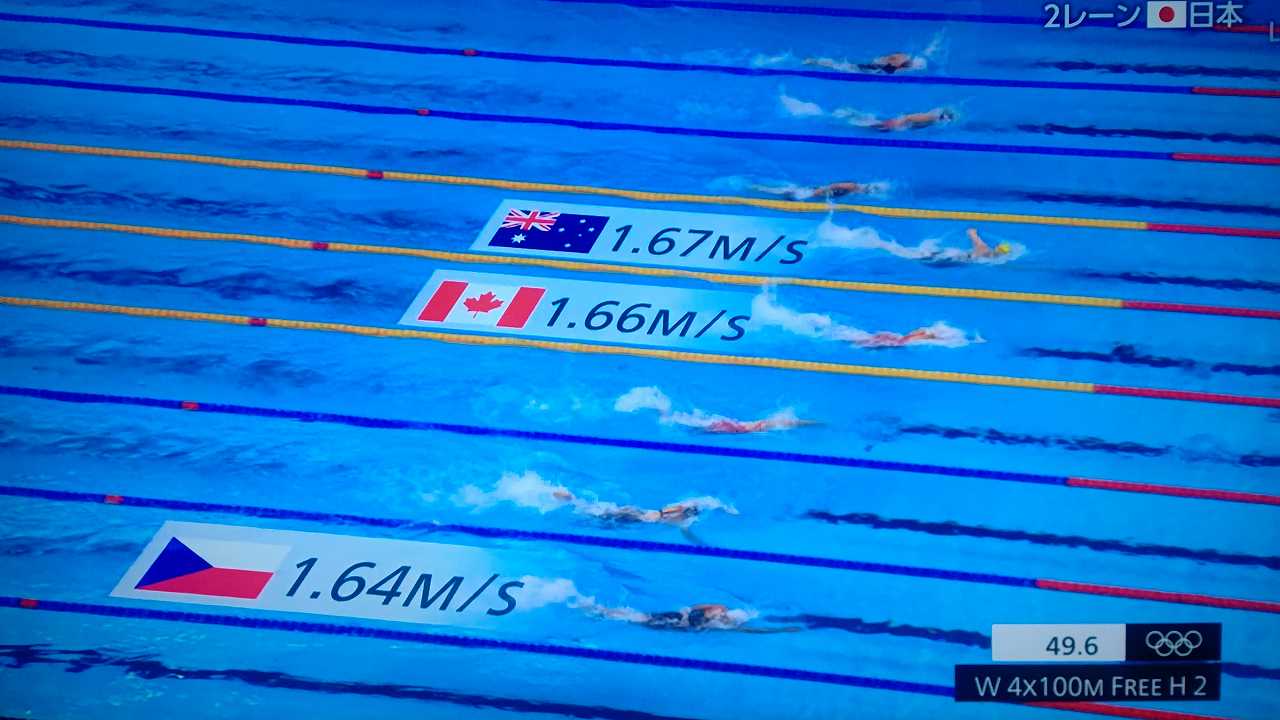 懐かしさがこみ上げる。スタート前、池江は五輪独特の空気を胸いっぱいに吸い込んだ。第2泳者として5番手でバトンを受けると、引き継ぎタイムながらチーム最速の53秒63で泳ぎ切った。日本記録に0秒03及ばず決勝進出も逃したが、表情は晴れやかだった。