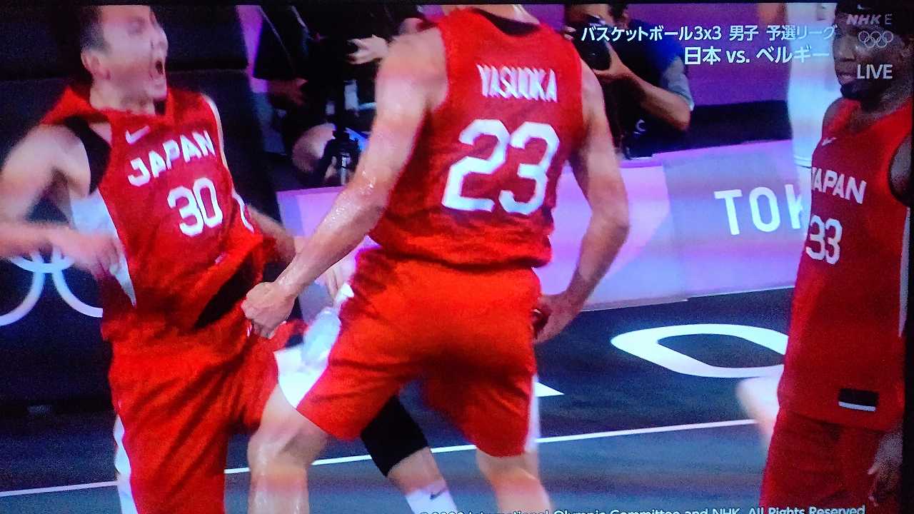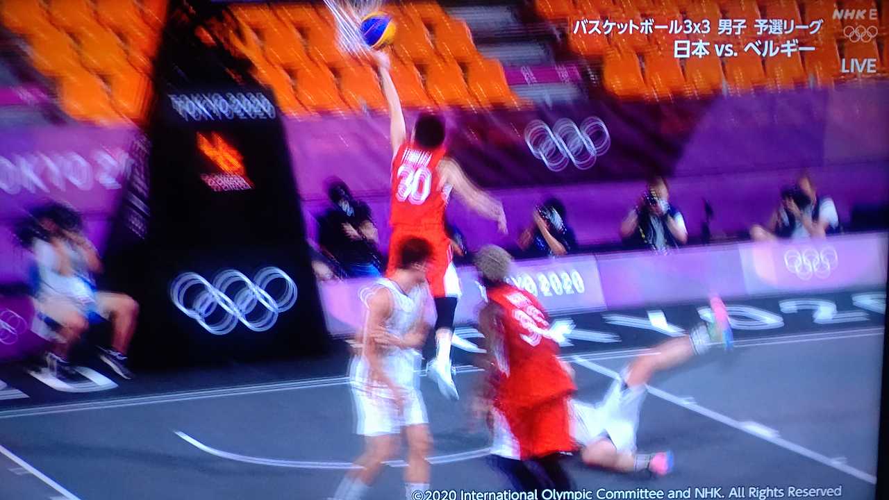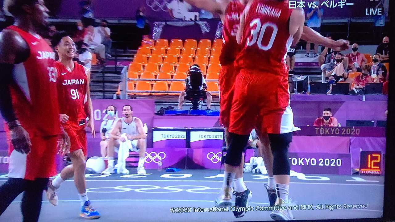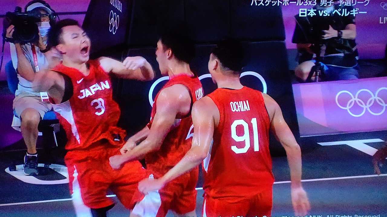 3x3男子、二戦連続で延長、初戦は2点入れられて負けて、ベルギーとは、もう、なかなか点入らなくて、ヤキモキしまくったとこ、最後一点入れて勝利!