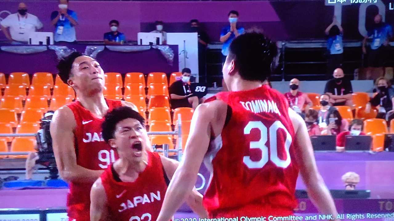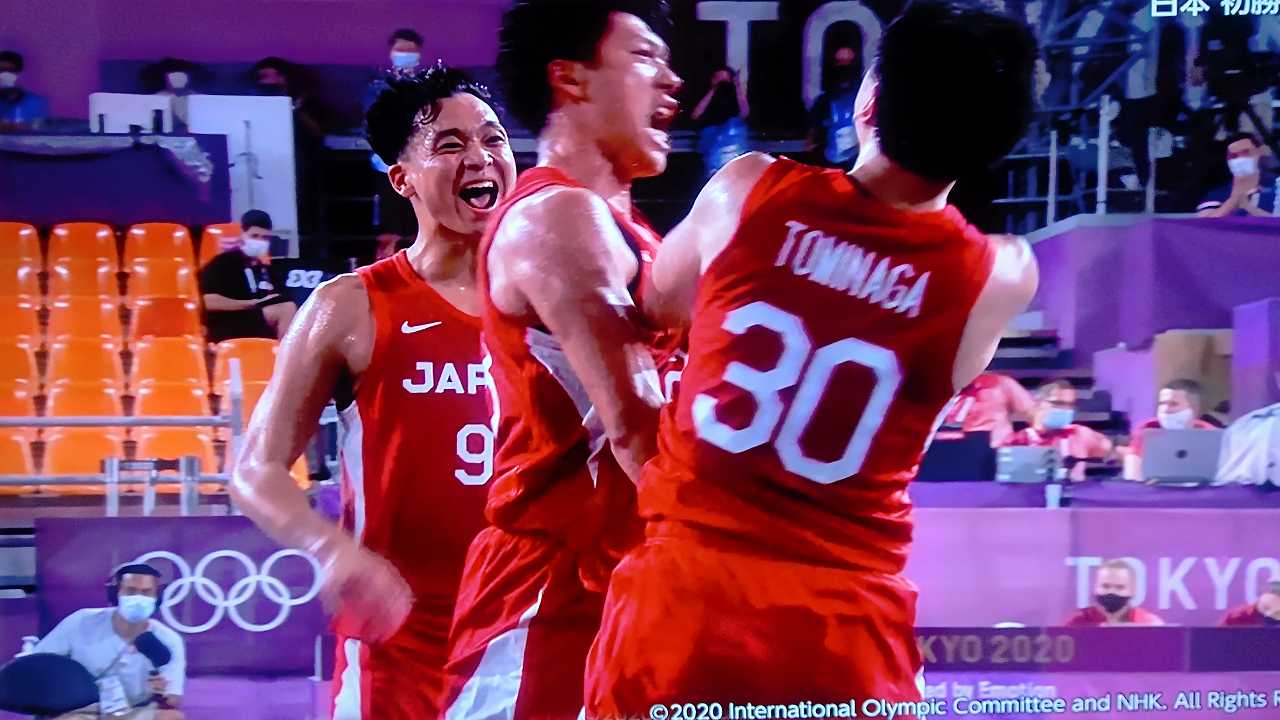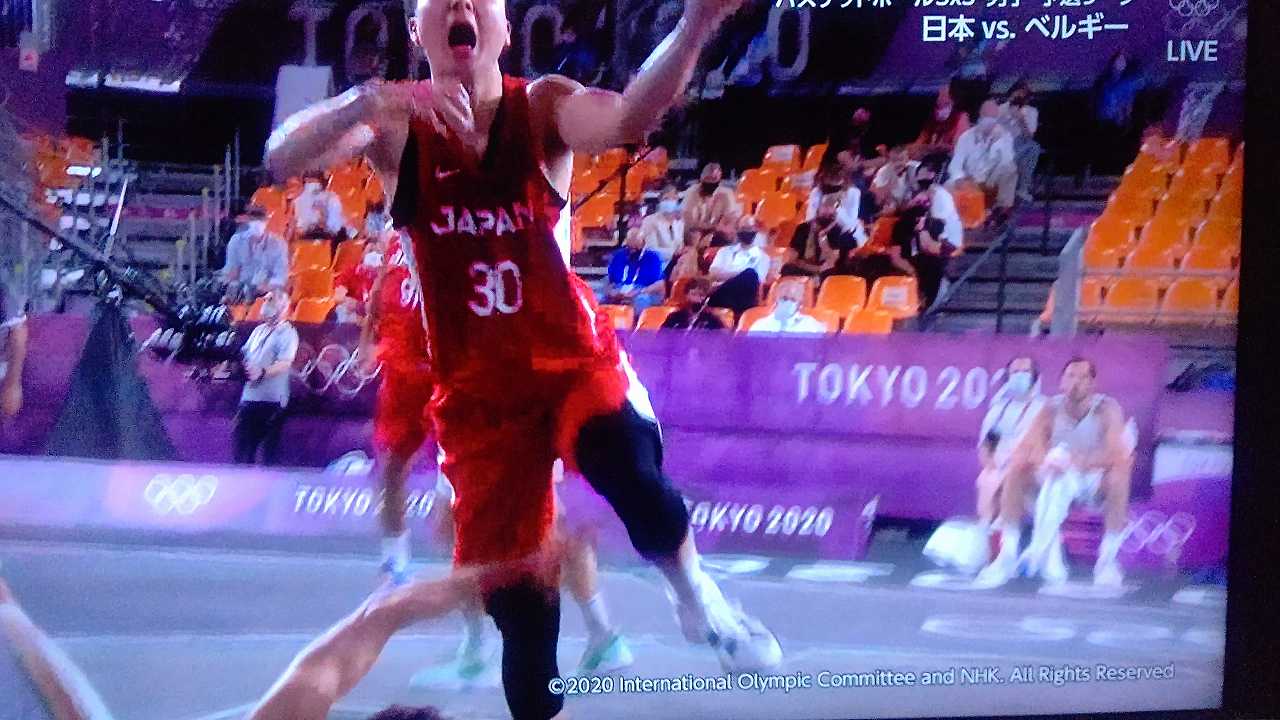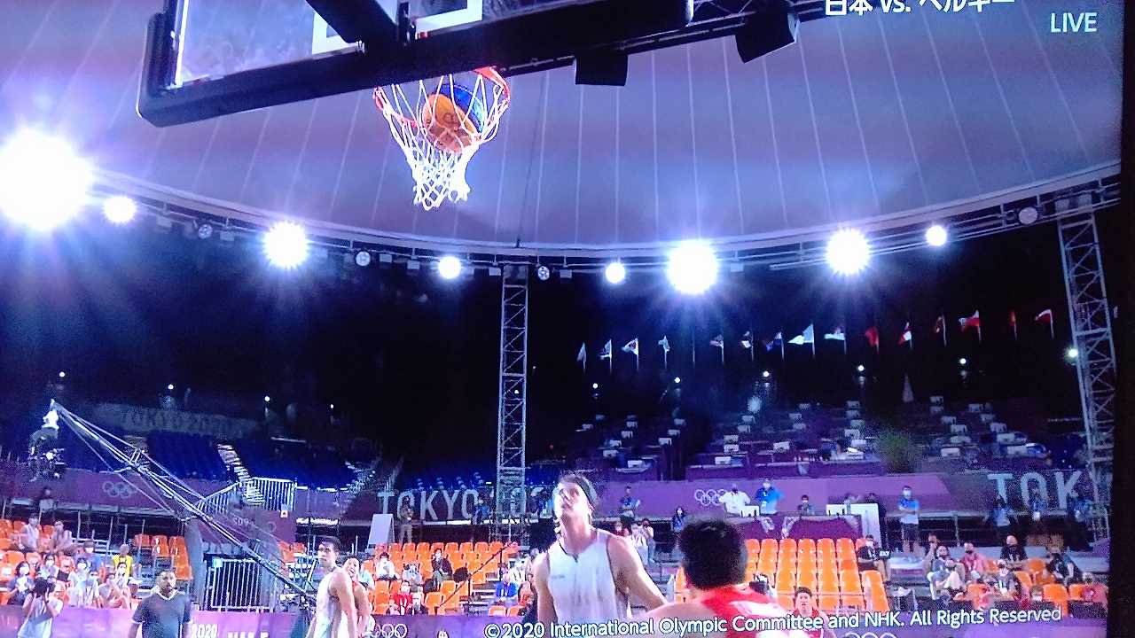 3x3男子、二戦連続で延長、初戦は2点入れられて負けて、ベルギーとは、もう、なかなか点入らなくて、ヤキモキしまくったとこ、最後一点入れて勝利!