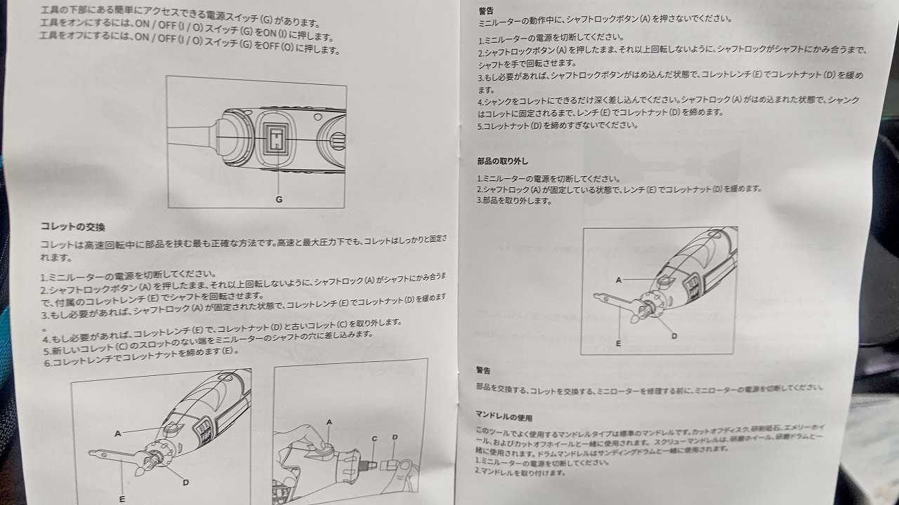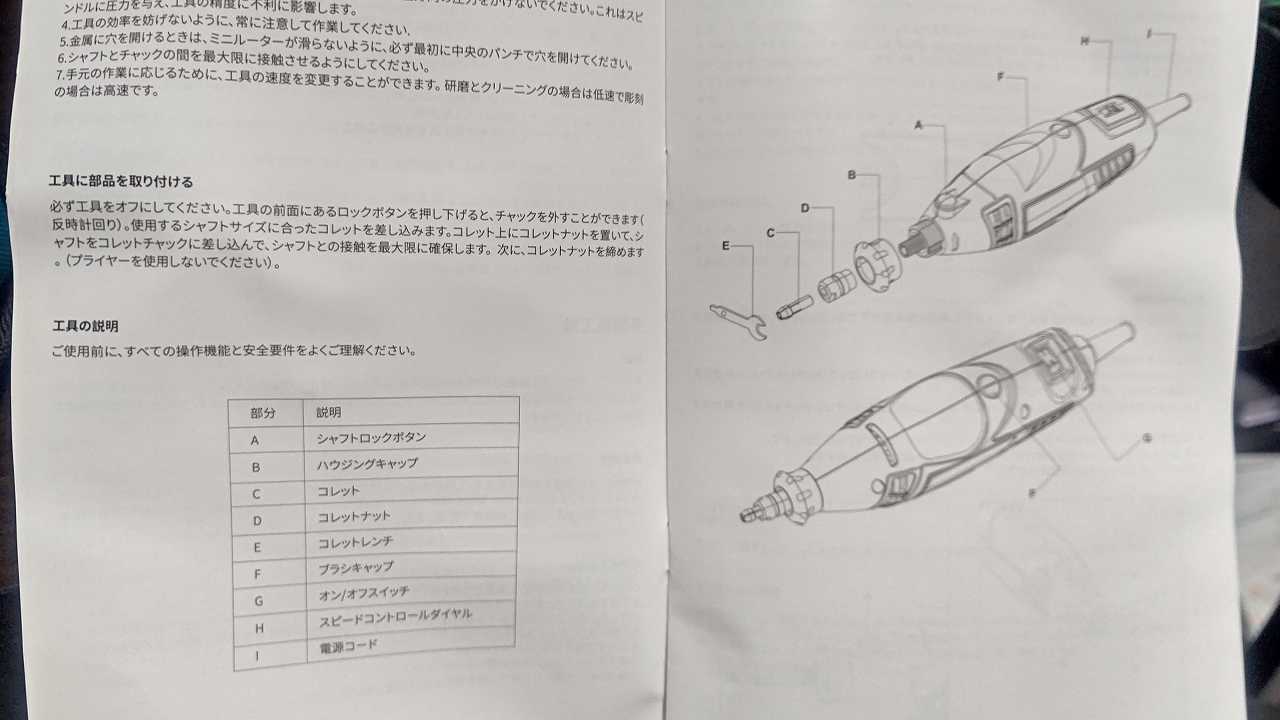 【ヒント】このミニルーターセットは専用カーボンブラシが含まれています、その他のカーボンブラシやパーツを使用しないでください。