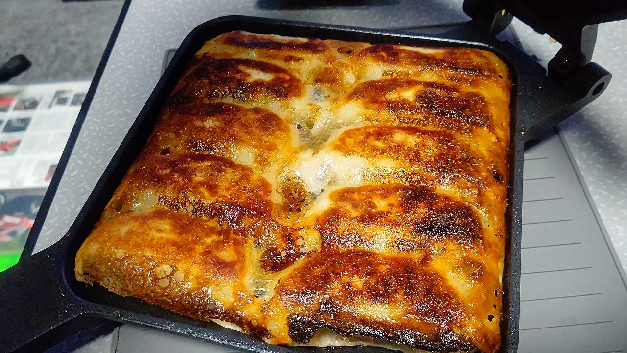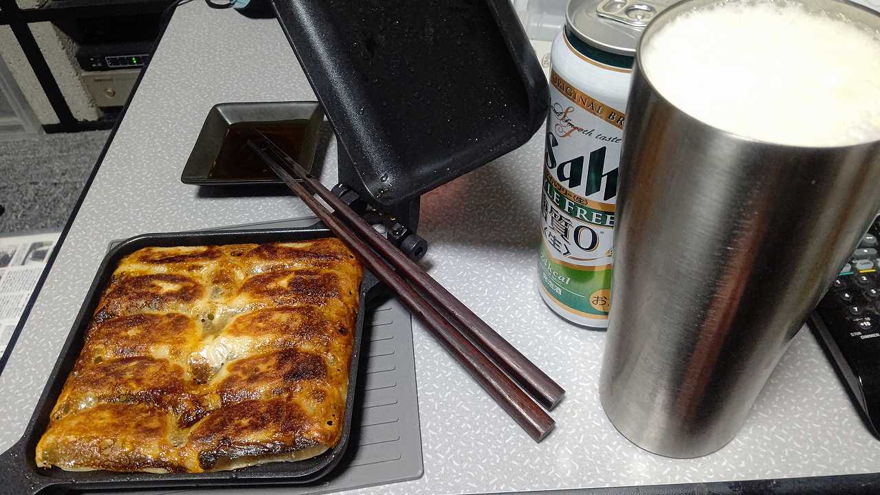 折りたたみホットサンドメーカーは、焼き目つける凸もないし、サイズでかいので、どれだけ餃子が焼けるか