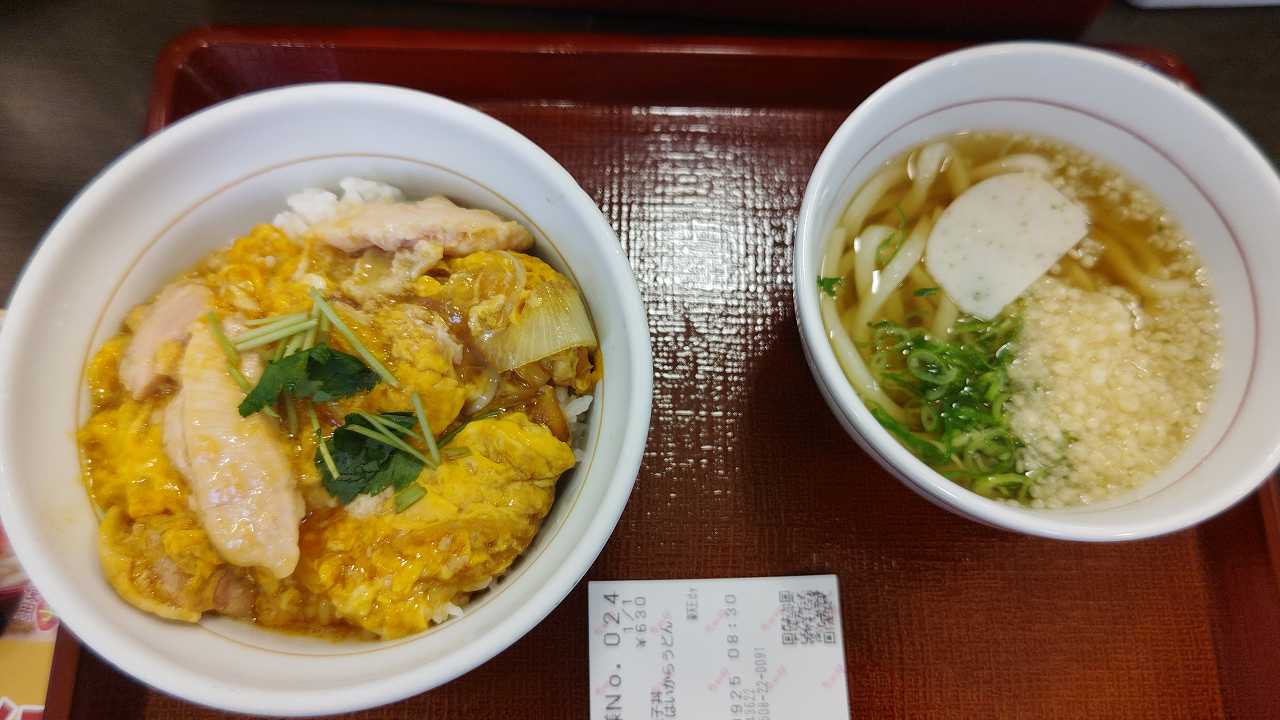 途中で、なか卯があるのを、この前気がついてたので、朝飯はこちら