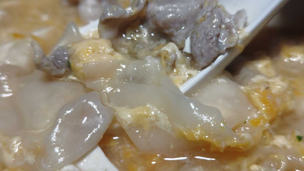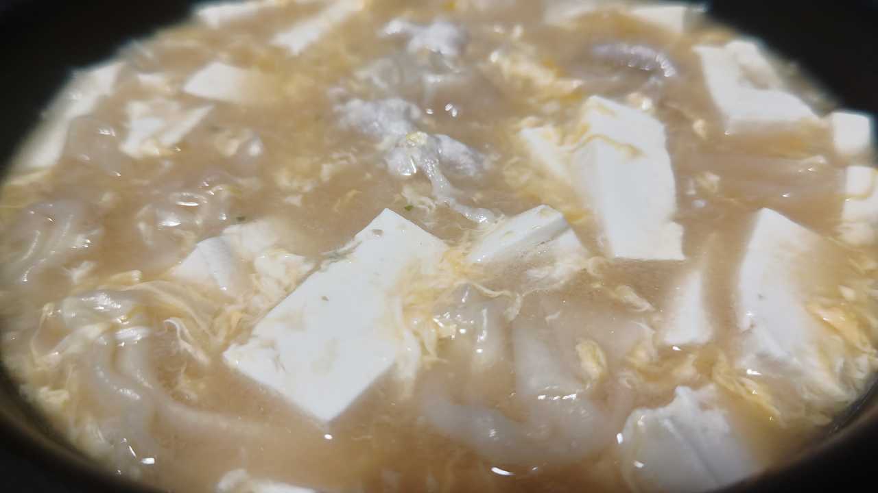 片栗粉で、とろみつけて、玉子二個、で、玉子スープに