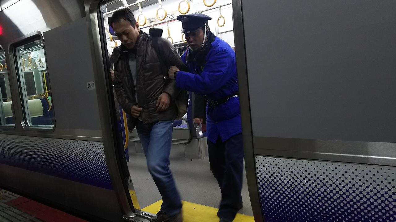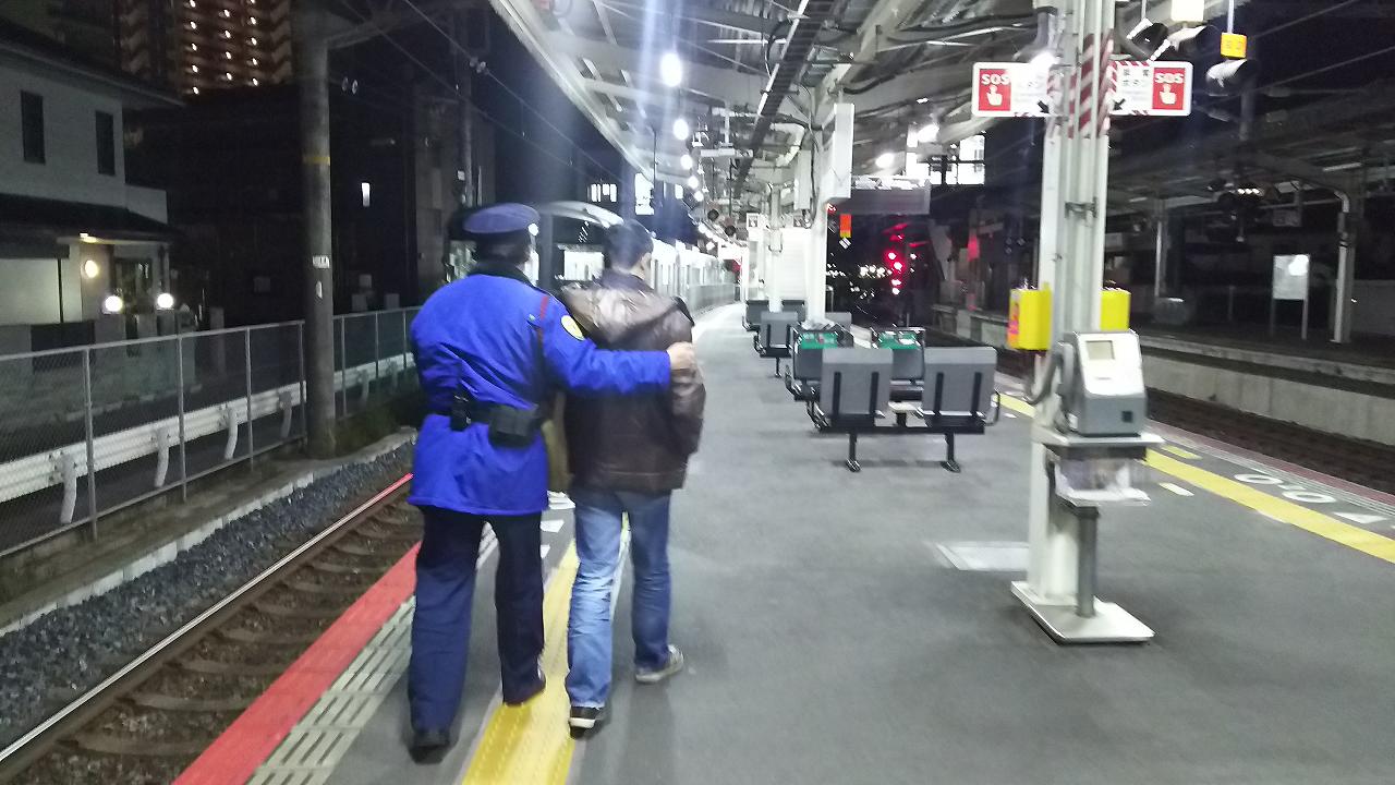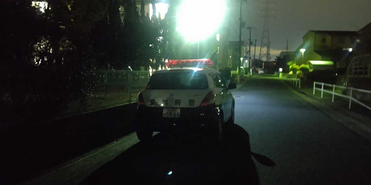 ゆっくり動いてて、そのうち赤色灯消して、ポリさん二人降りてきて。。。