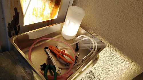 組み立てて、フルード入れて、ニギニギするけど、出てこない。量が減らない