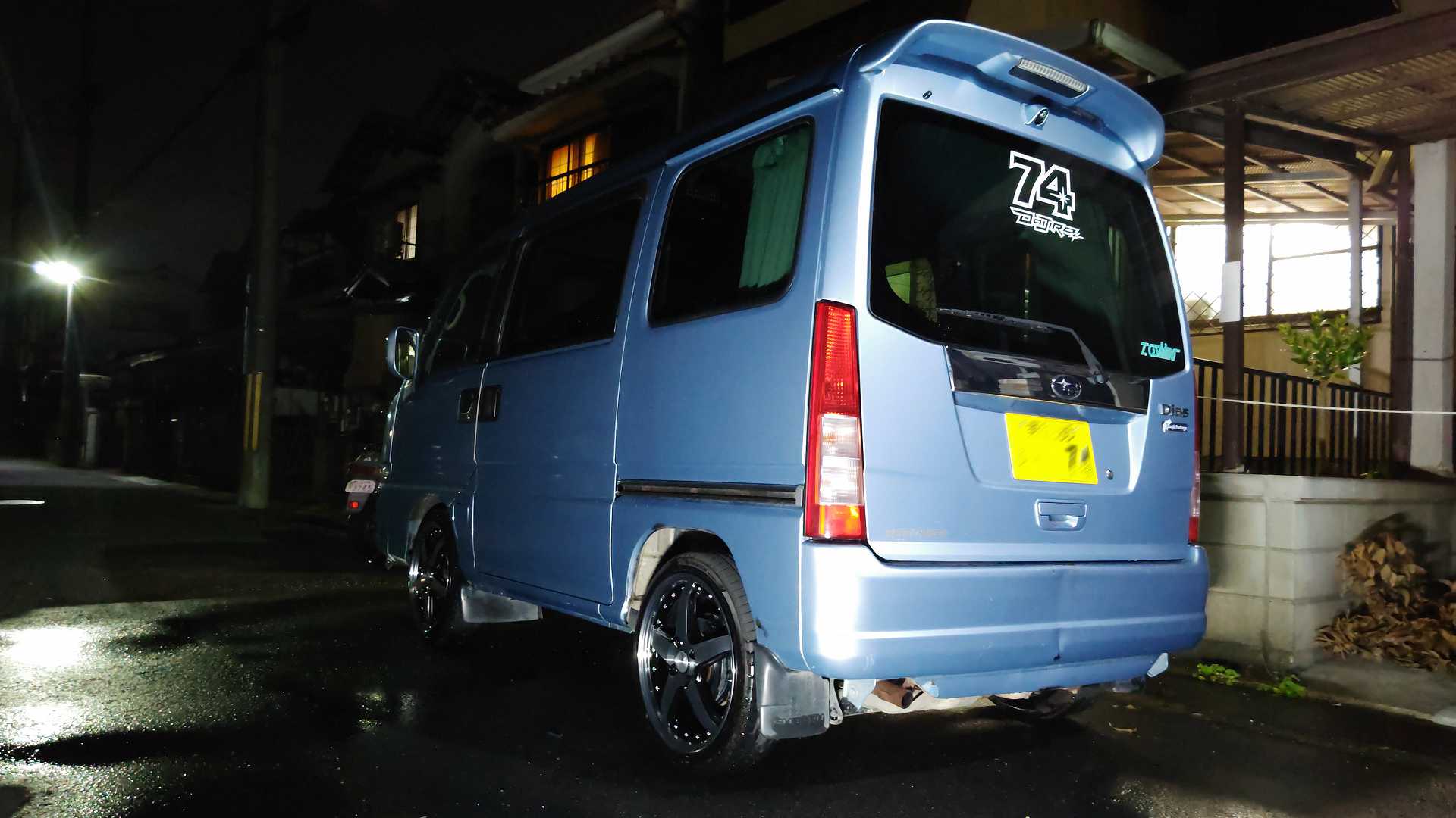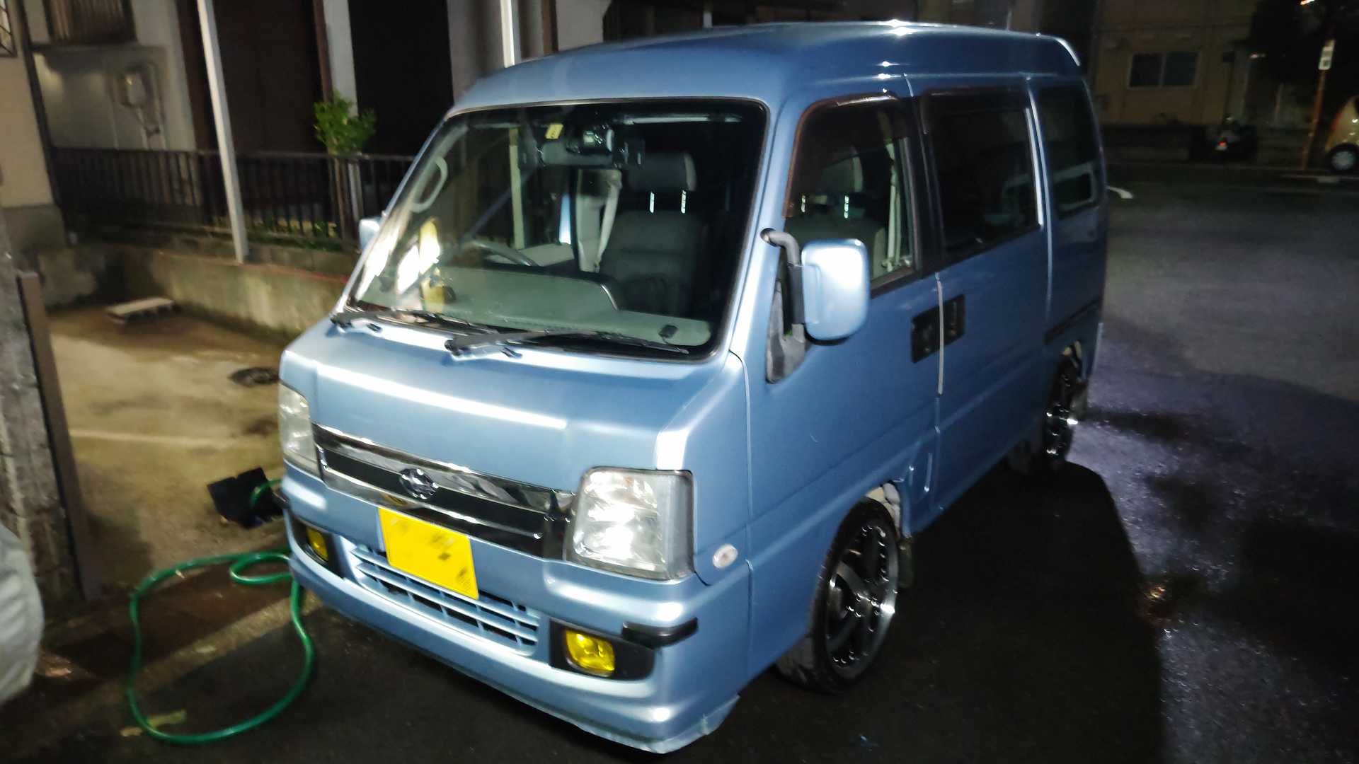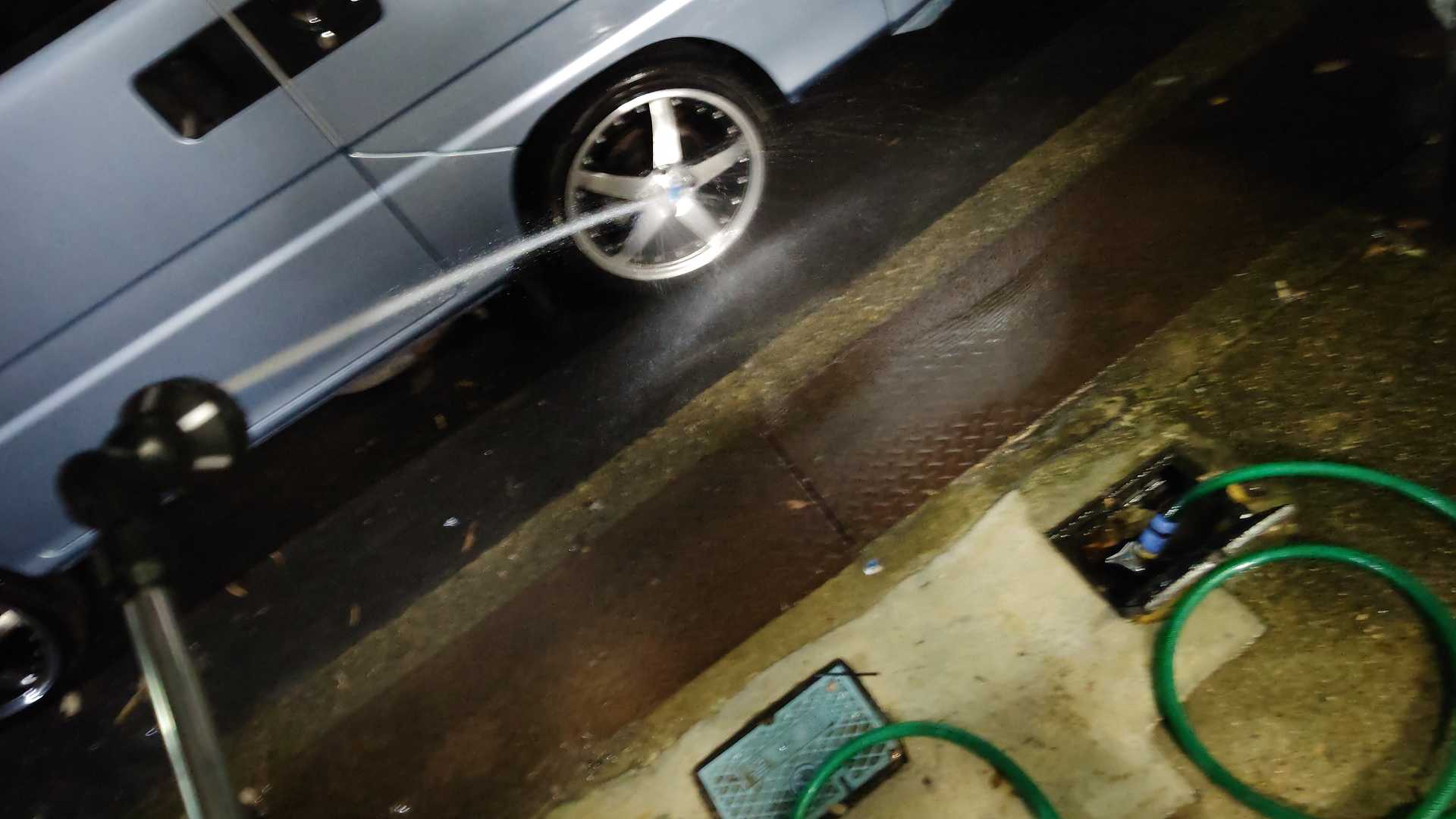 サンバーのホイールのセンターにあったブルーの保護フィルムは、前に、大雨の中走って一枚剥げてしまってたので、今回、この水圧で、のこりも剥がします。。。
