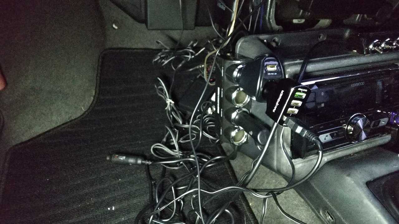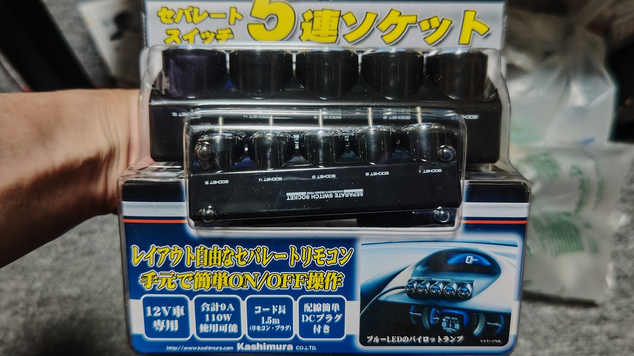 シガーソケットの分配機。。。こんなにいらんのに五つのにしてしまい、つける場所がない。。