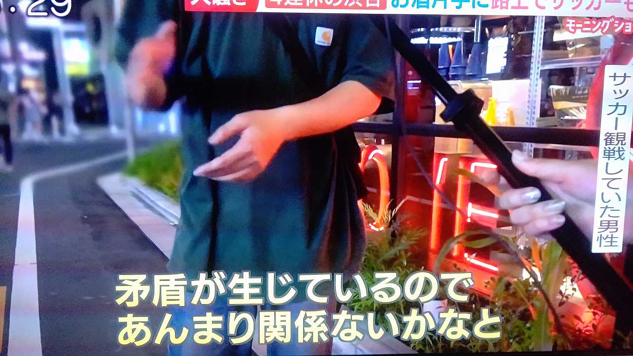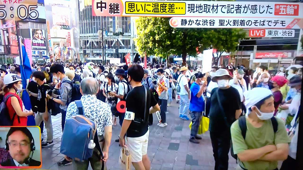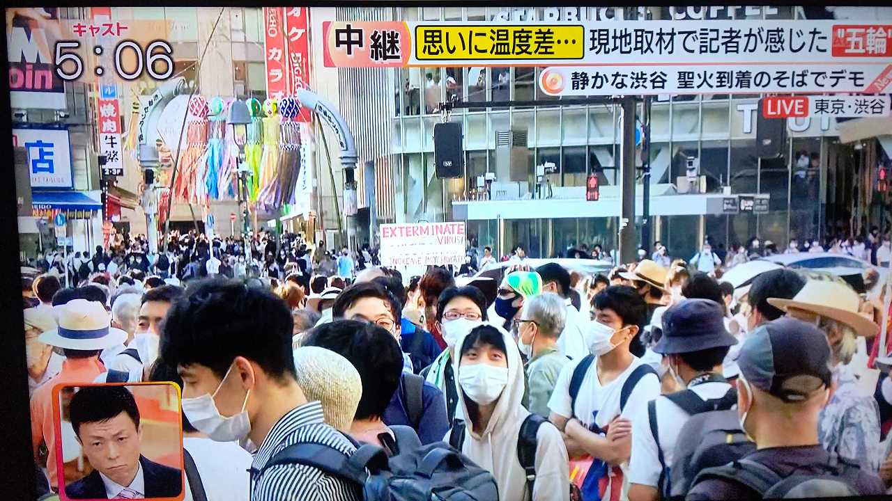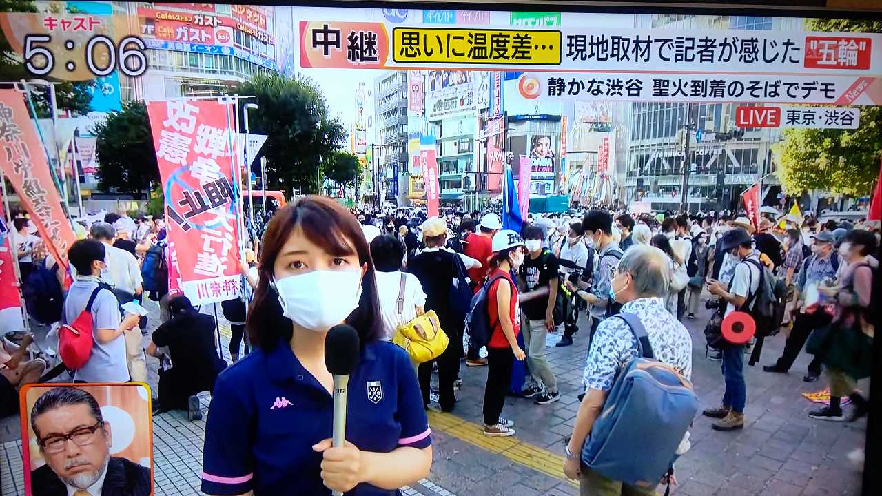 オリンピックでサッカーとソフトが勝ったニュースも、緊急事態宣言中なのに、BBQや行楽地の最大の人手ってのと渋谷のスポーツバーや泥酔して寝てる人とかのニュースに挟んで流してる