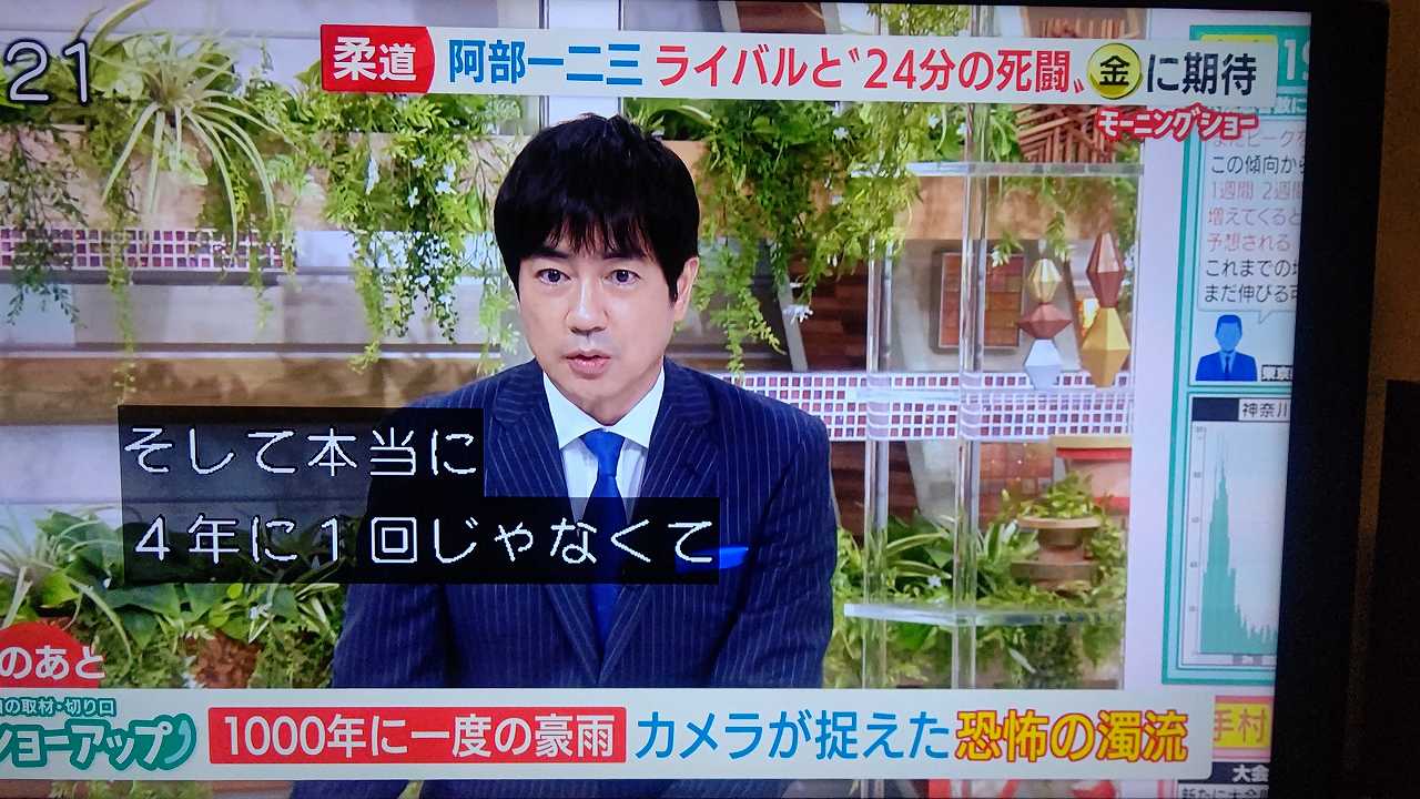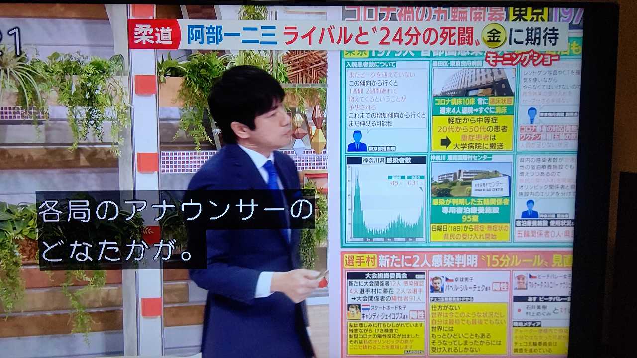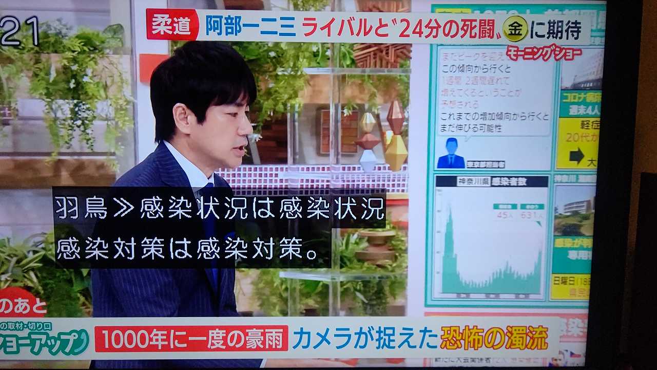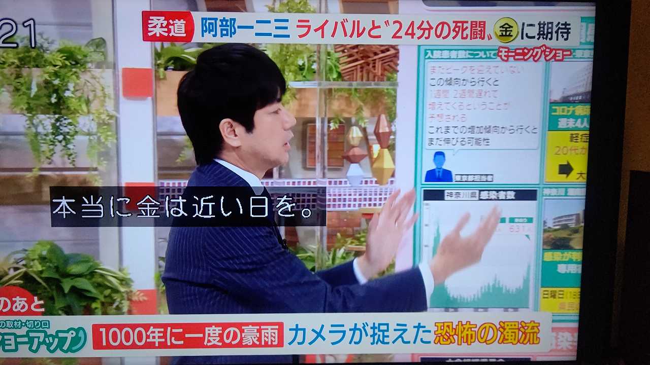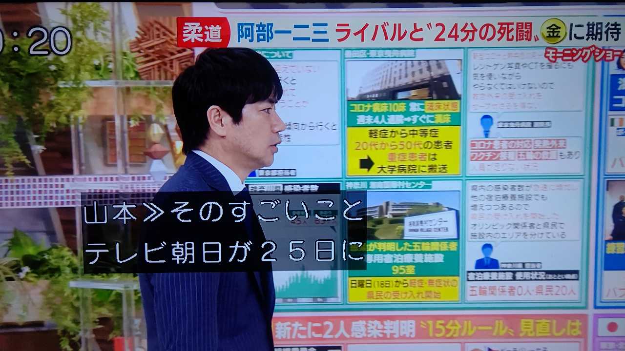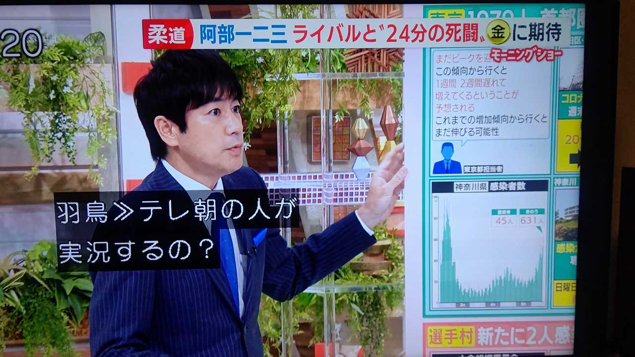 モーニングショー サッカーとソフトの勝利でもコロナ批判なのに、テレ朝中継の柔道を見ようと宣伝