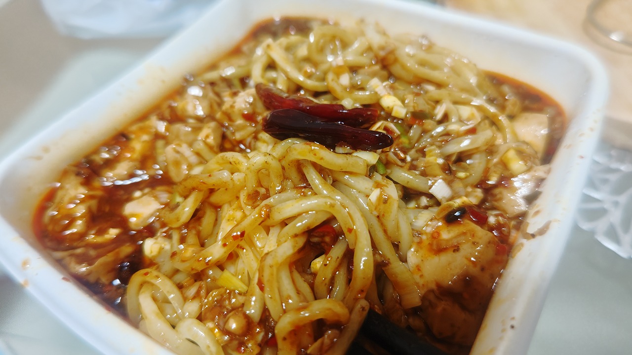 麻婆豆腐専門店 からいもんや 八幡店 かけ麺 激辛で花椒、唐辛子増し 生麺持ち帰り