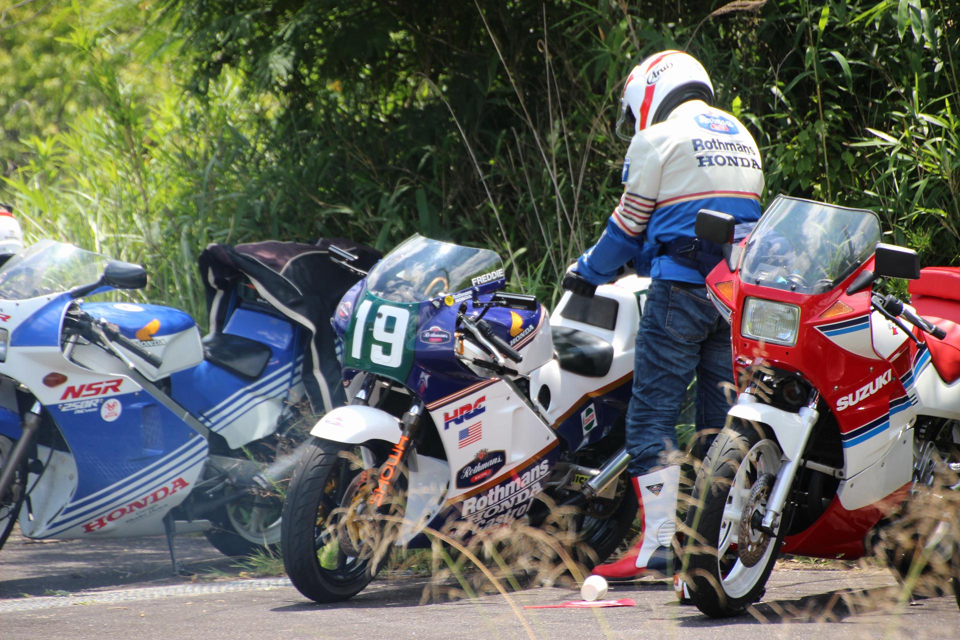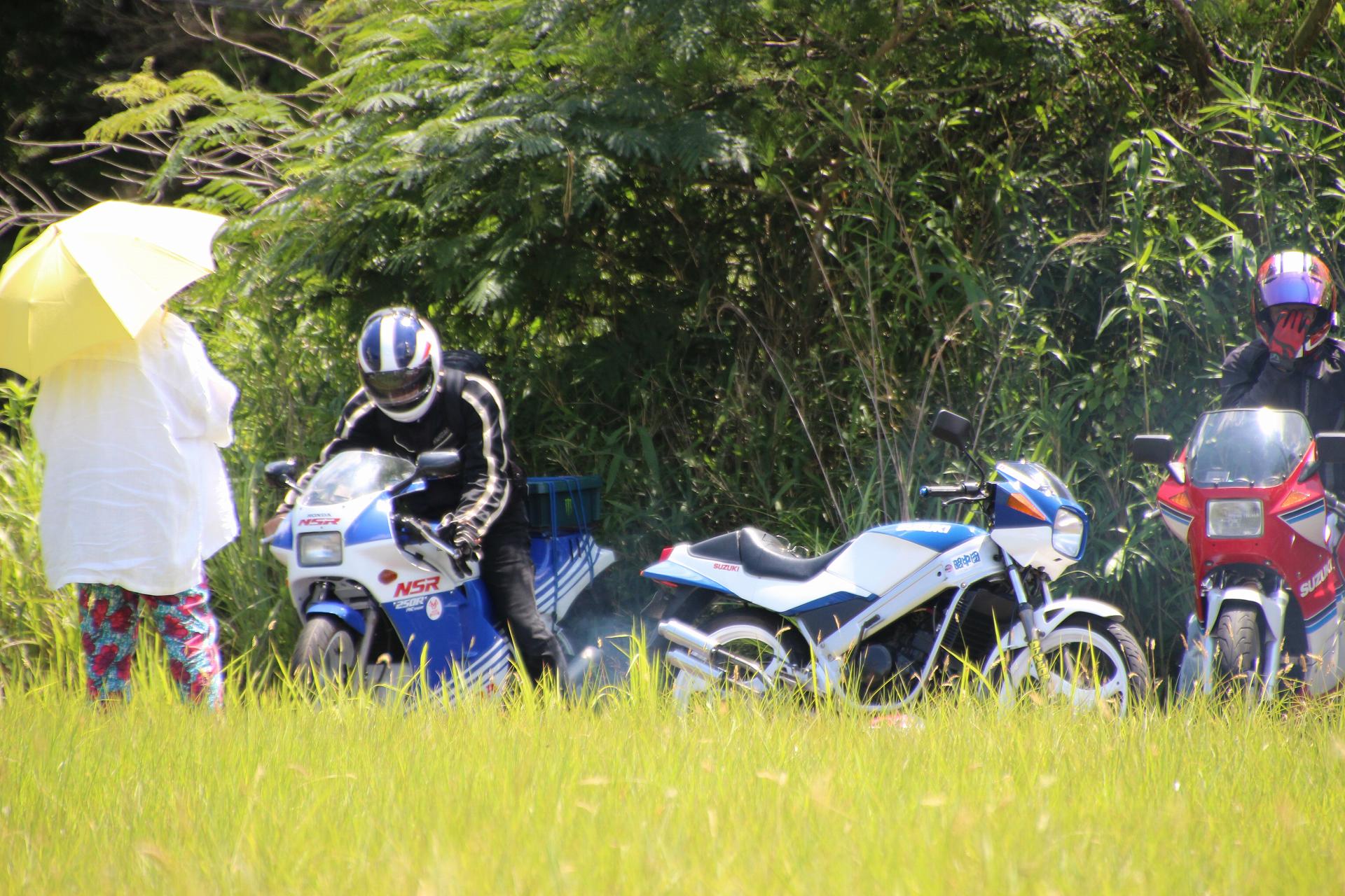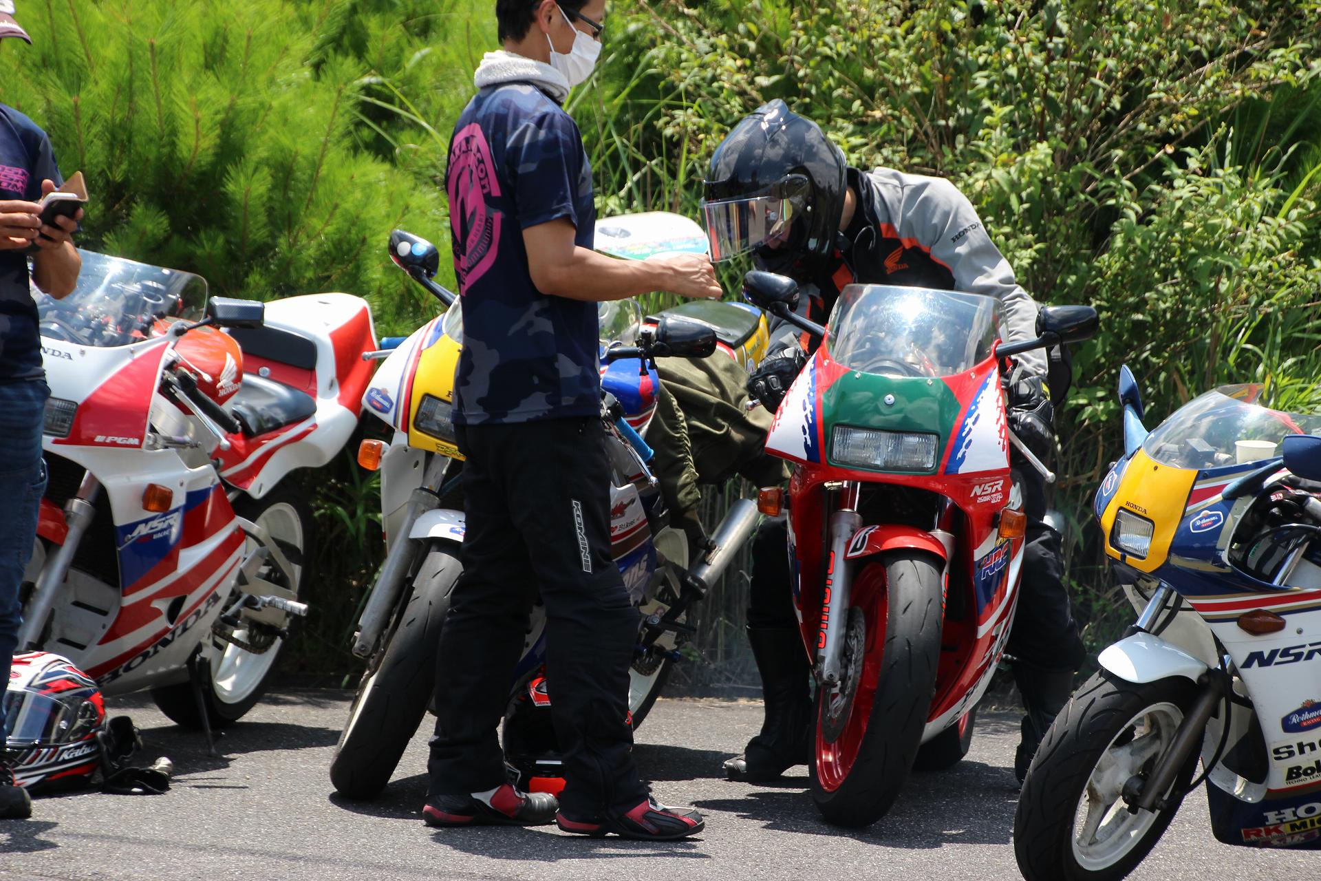 おお!この前、針であった、ドラえもんヘルメットのNSR50も来られてる!!