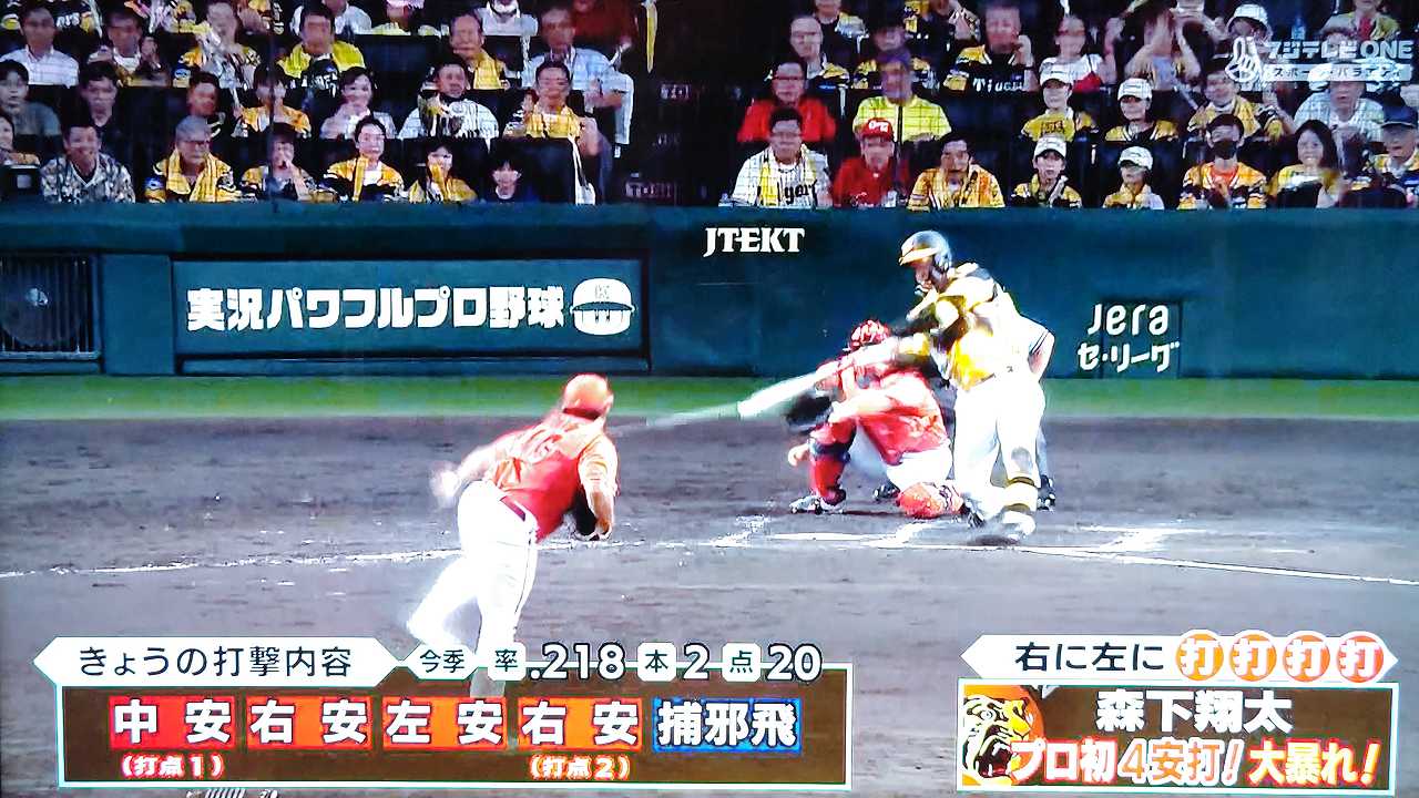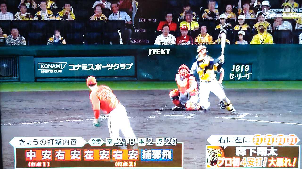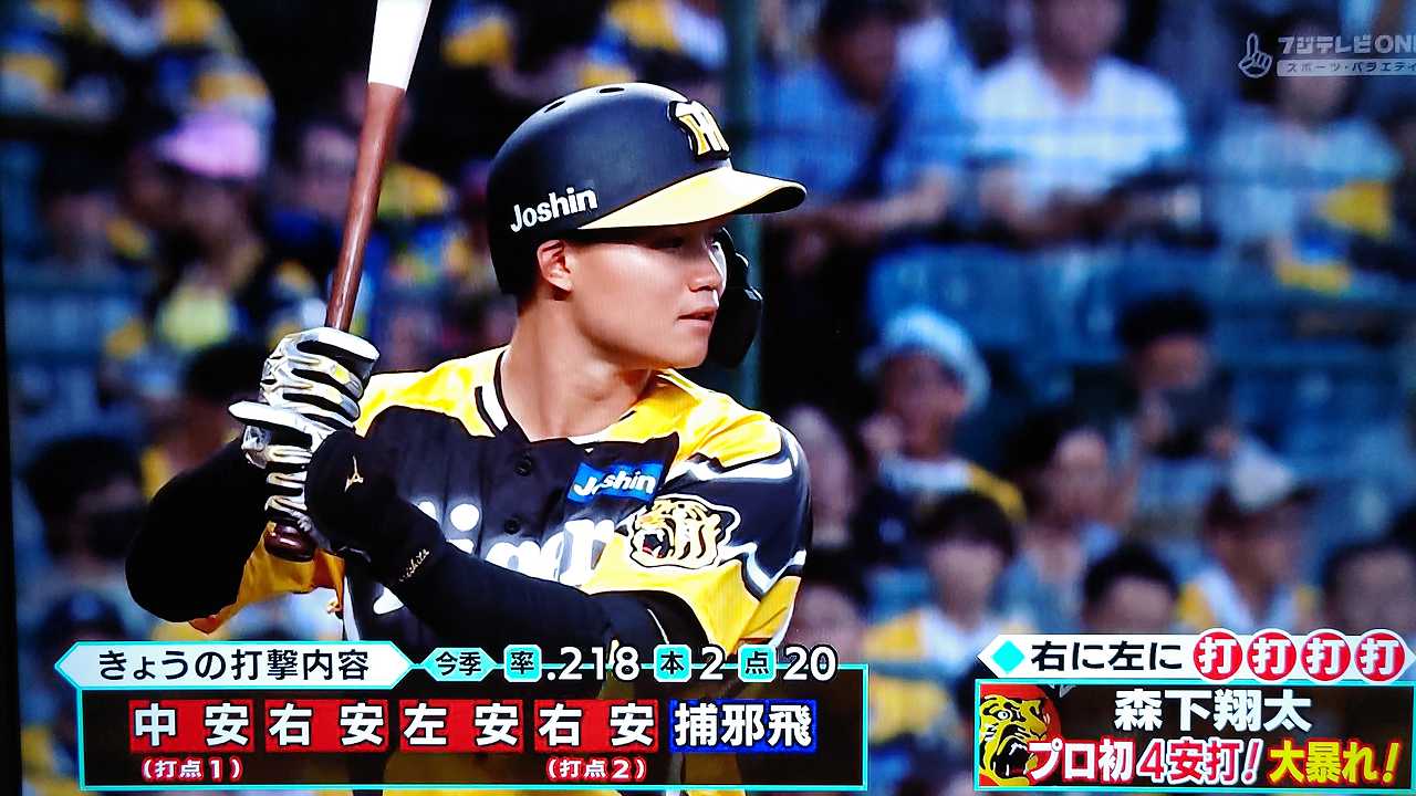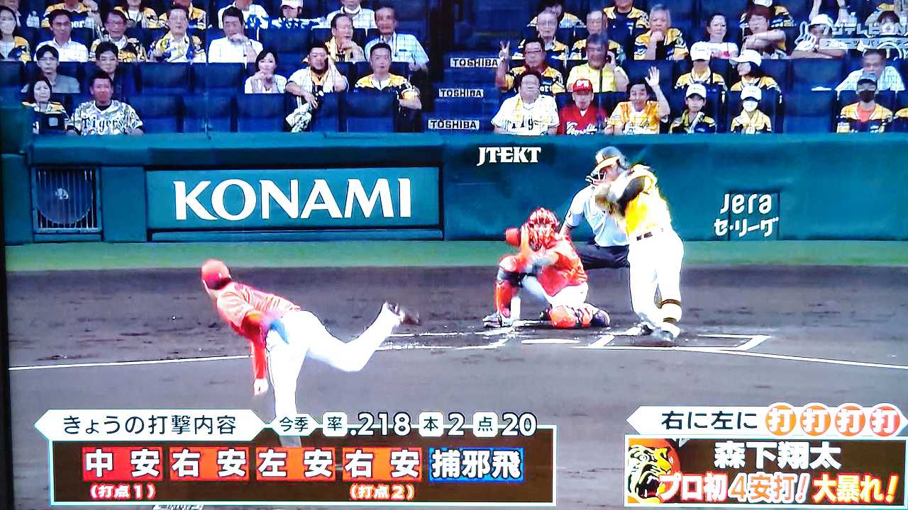 さらに5回までに3安打を放ったルーキーのバットは止まらない。1点リードの6回に下位打線がチャンスを作り近本の押し出し四球と中野の適時打で2点を加えると、森下がファースト強襲の2点適時打を放つ。これで4安打3打点の大活躍だ。
