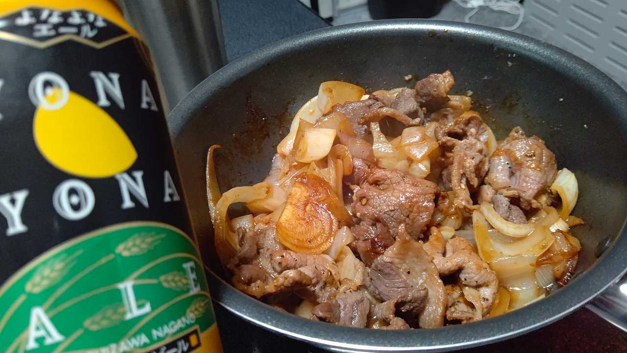 玉ねぎをスライスして、ニンニクスライスとでいただきました。