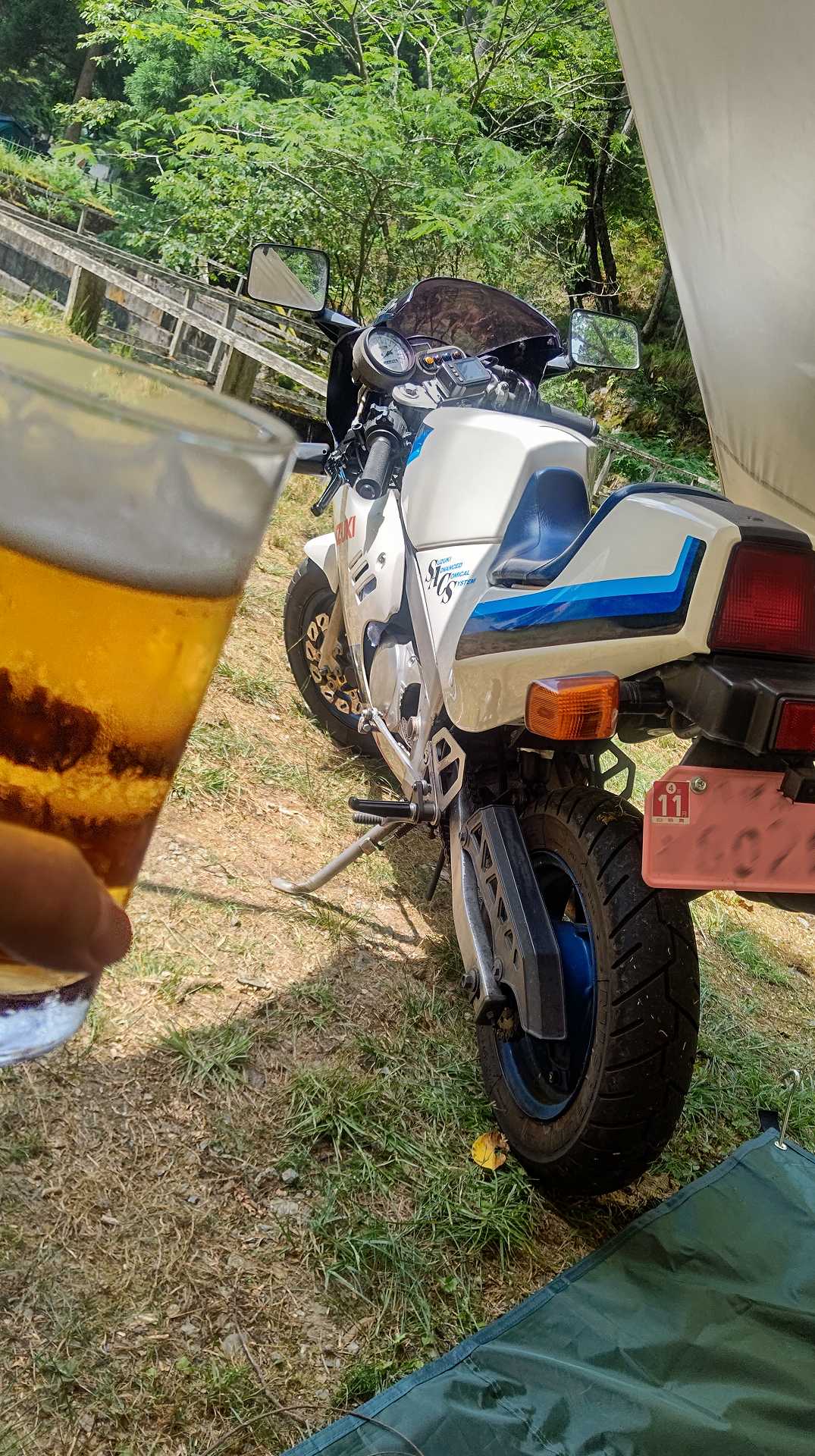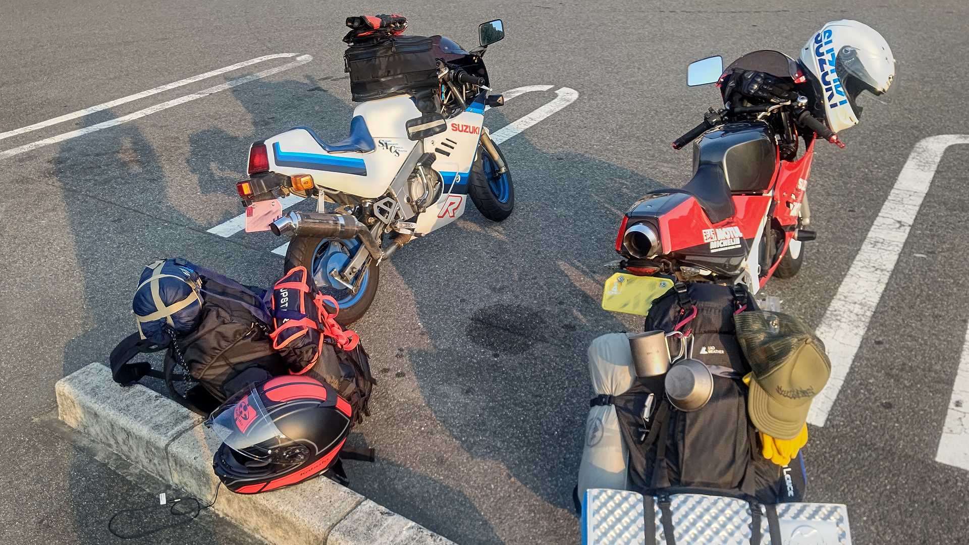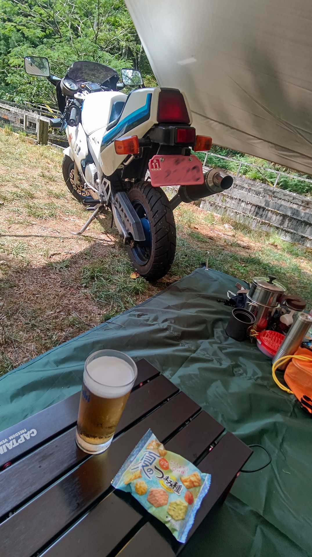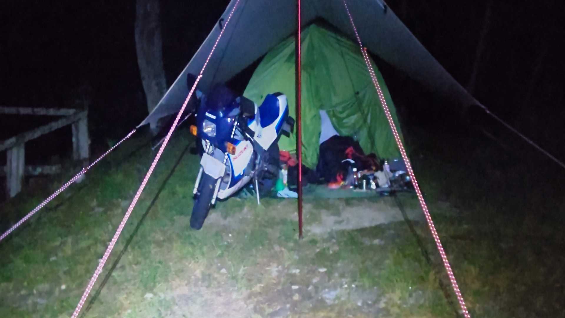 1時過ぎに寝て。。。3時半に起きて、タンクバッグの中のソフトクーラーにビールや食材詰めて
