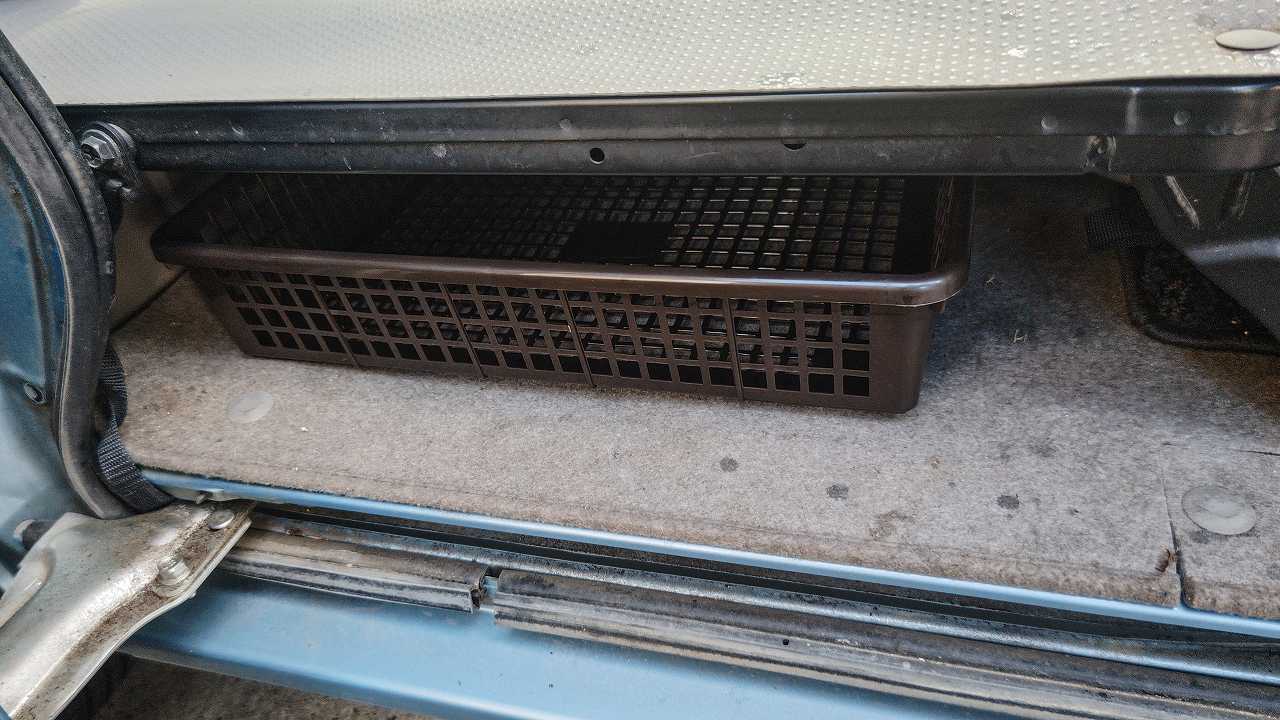 あと、セリアで買ってきた、プラ性のバスケットを、レールの上に三つ、結束バンドでくっつけただけです