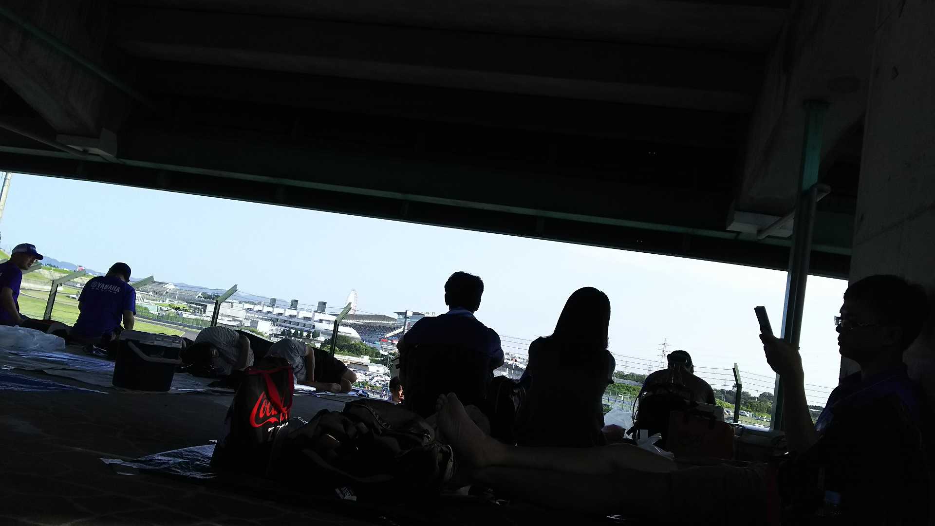 あんなとおくの騒音のなかの車の中まで聞こえてるんだと逆に気をよくしクアハウスで風呂入ってソファーに座って二時間はんほど意識がなくなって朝5時にでて朝飯買っ6時から並んで席をとったとこです