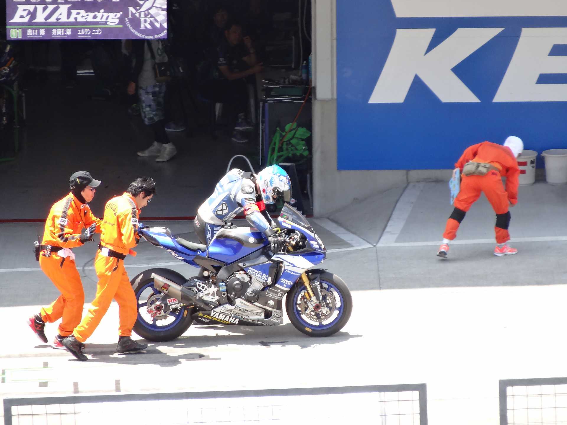 一人調子よくはしっていた岡田転倒 ピットには戻りました