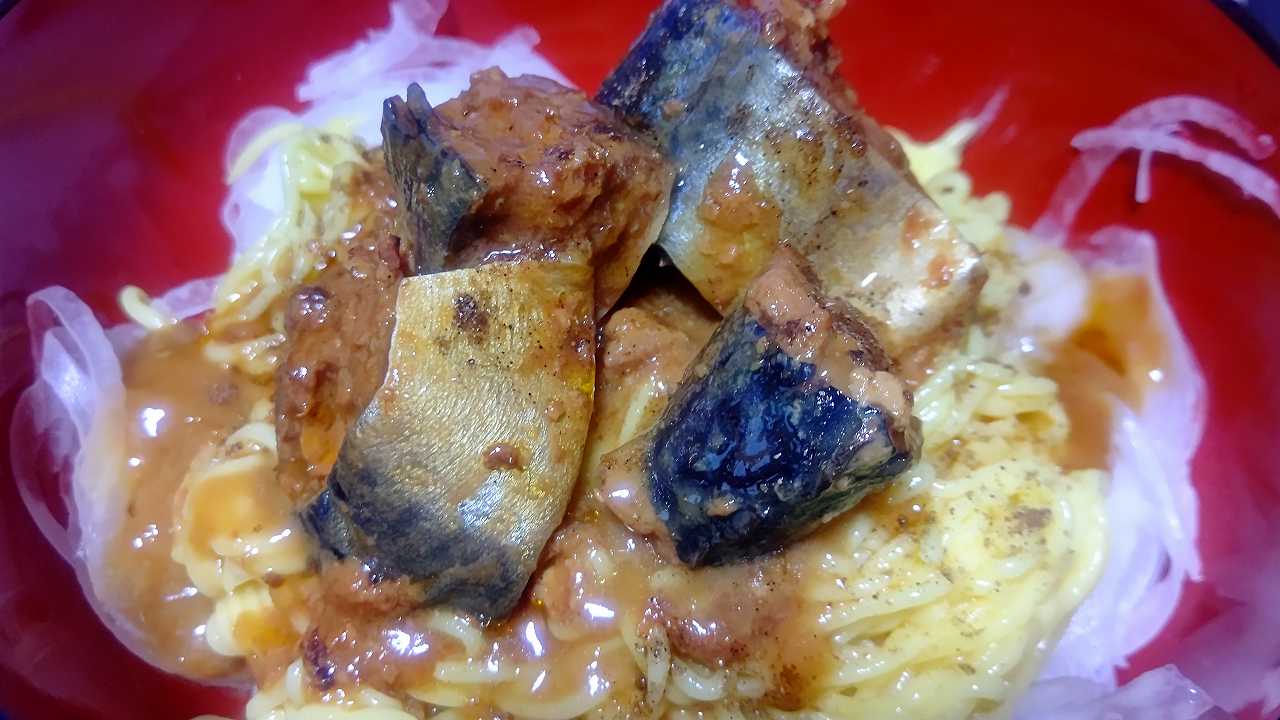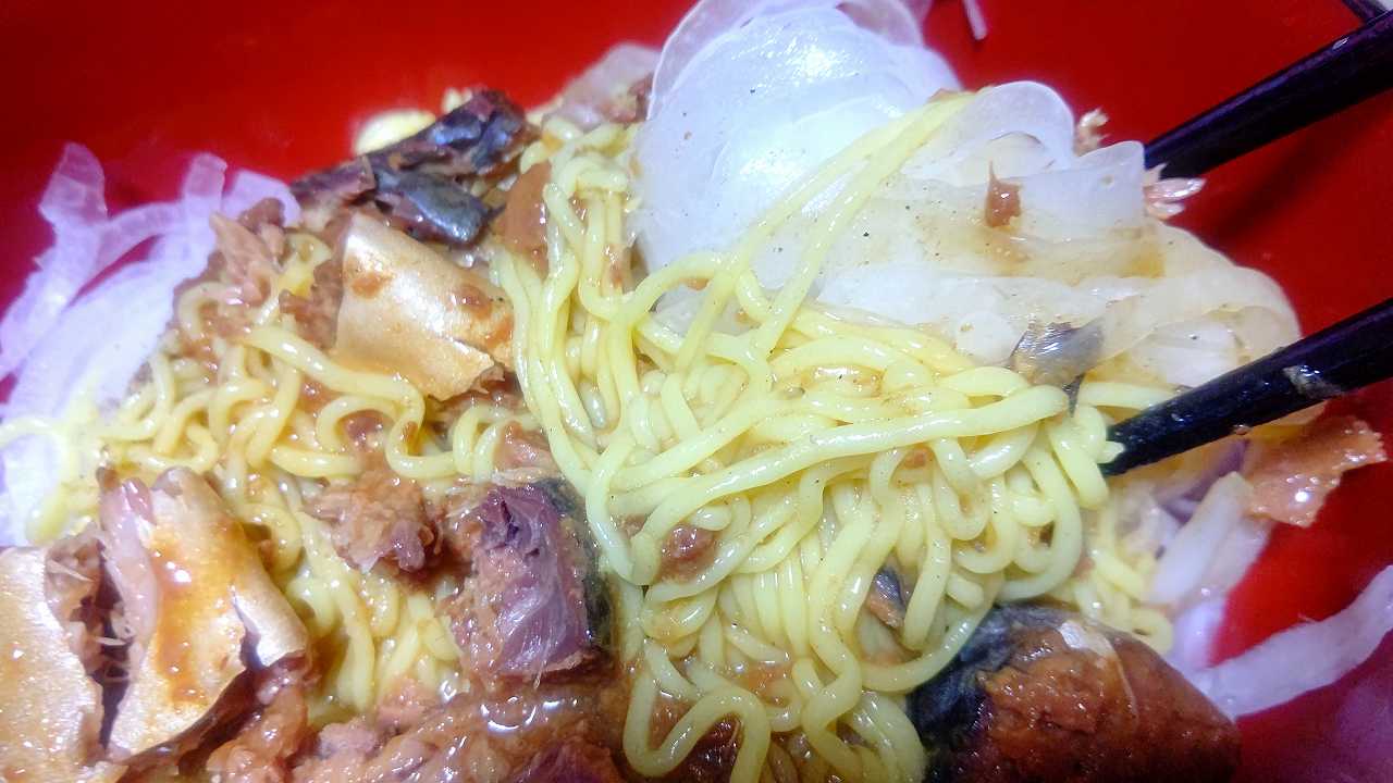 新玉ねぎスライス コンニャク冷麺 鯖缶味噌煮
