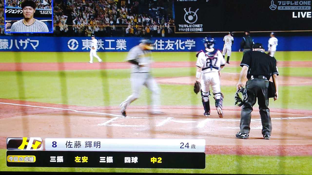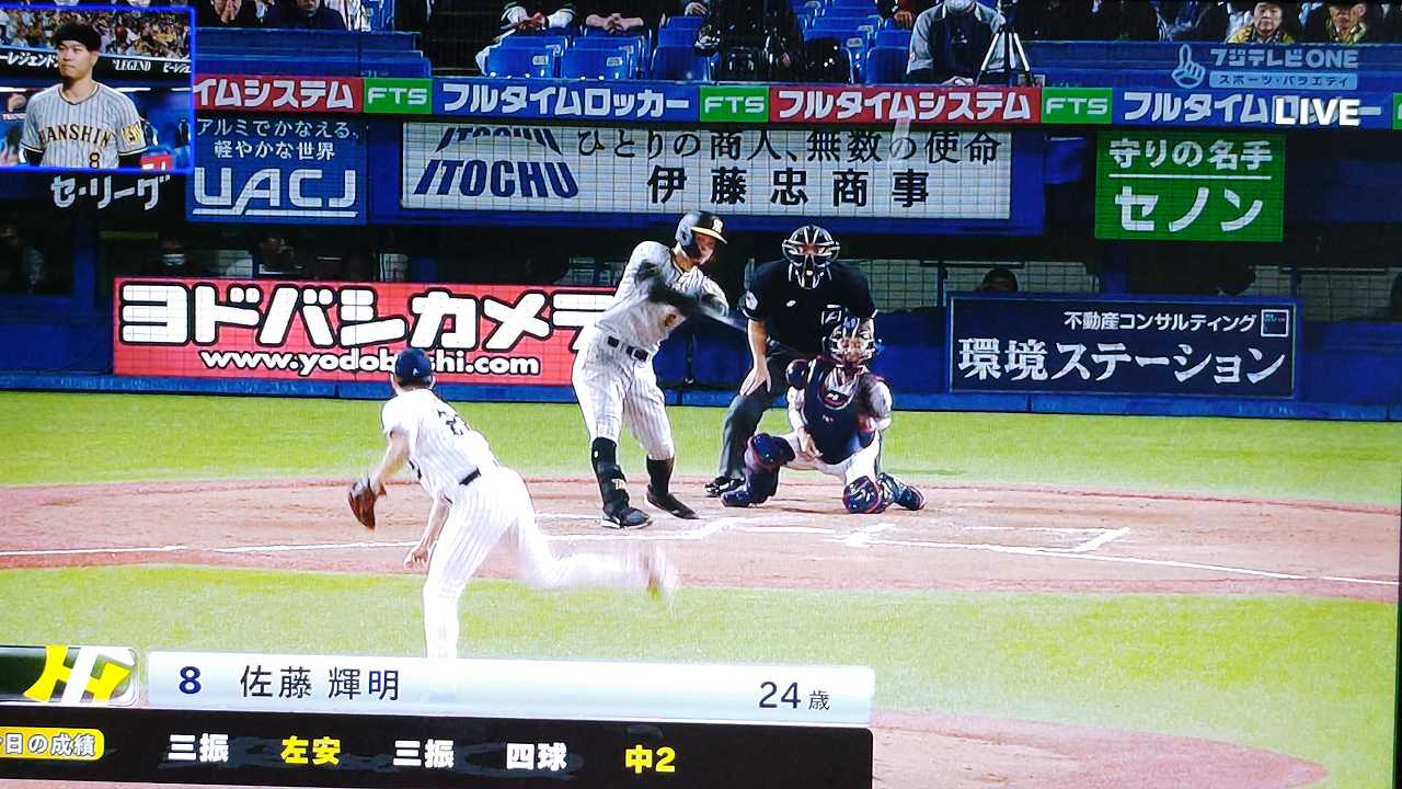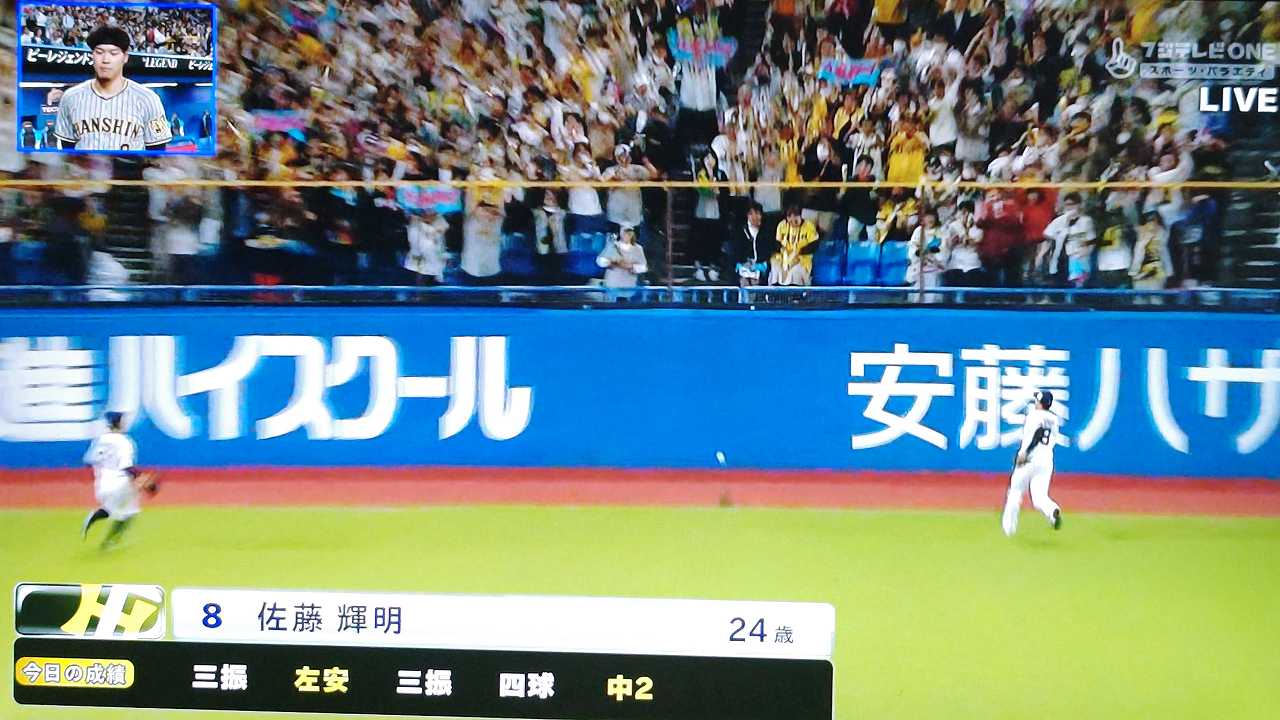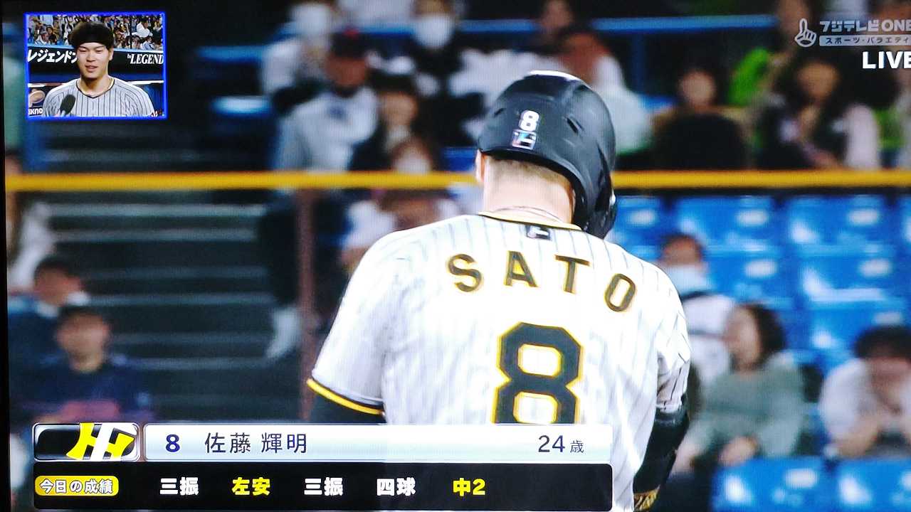 村上さまに特大のホームランは打たれましたが、まったく勢いは繋がらず、塩見の三塁線の抜いたかのあたりを、サトテルが、超ファイルプレー!!