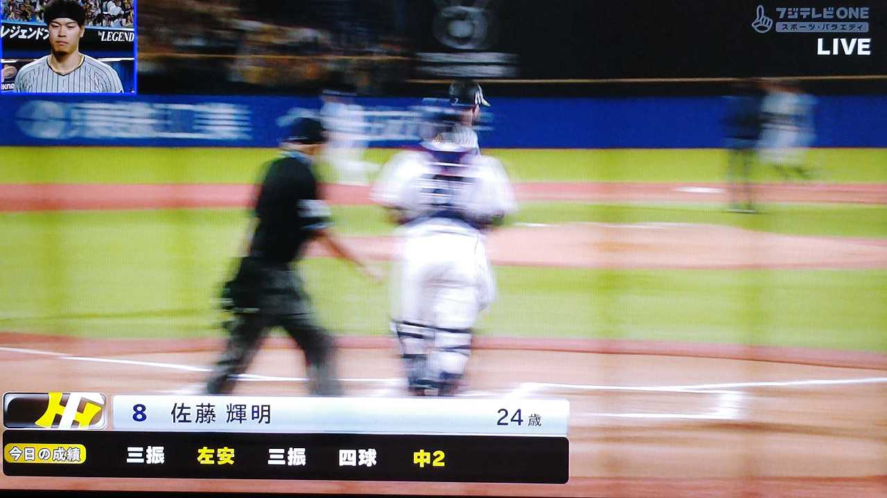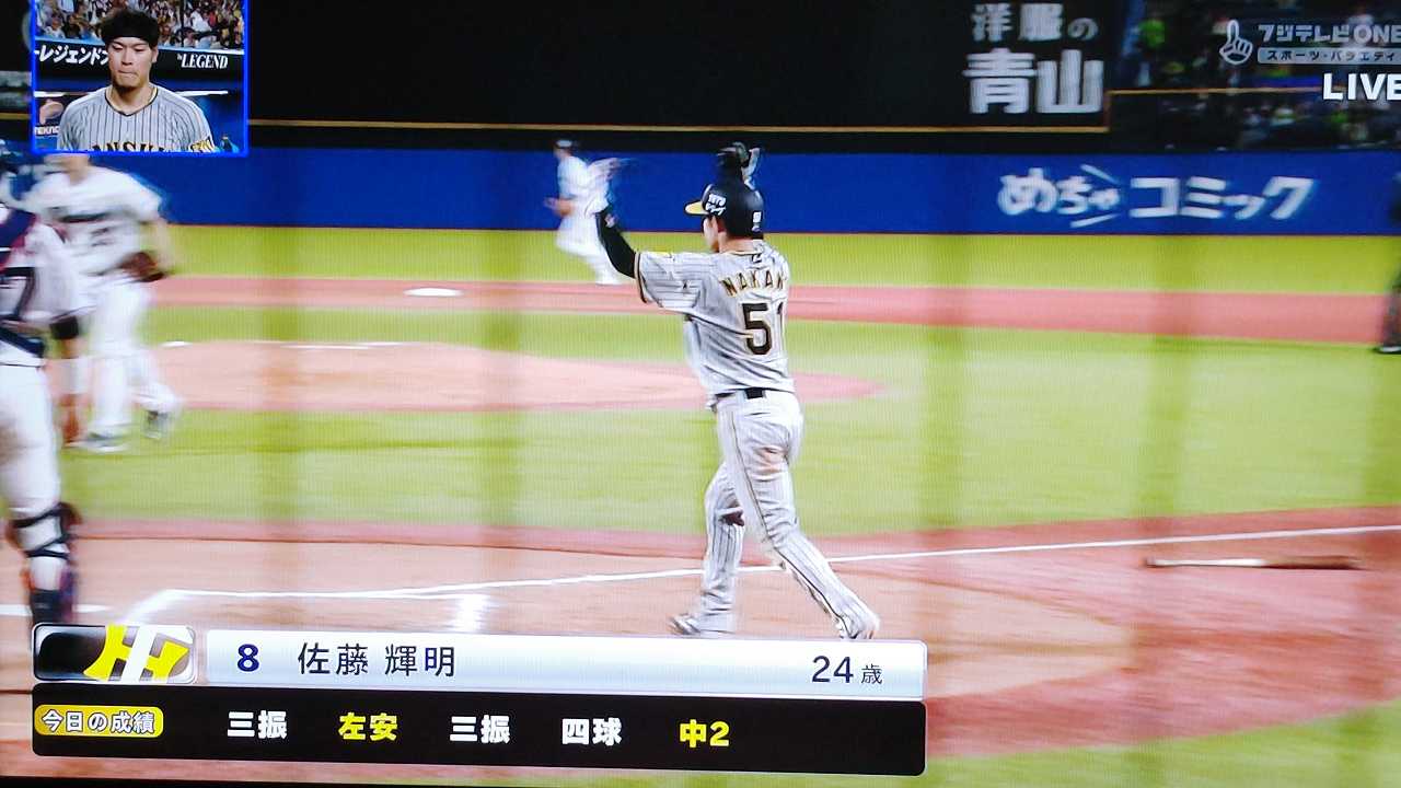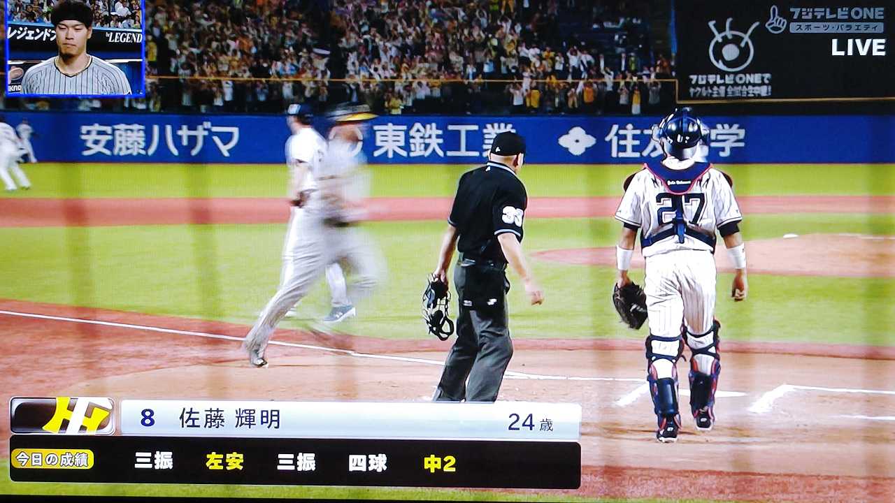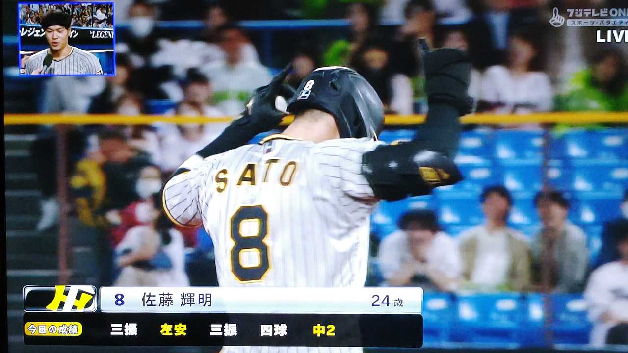 村上さまに特大のホームランは打たれましたが、まったく勢いは繋がらず、塩見の三塁線の抜いたかのあたりを、サトテルが、超ファイルプレー!!