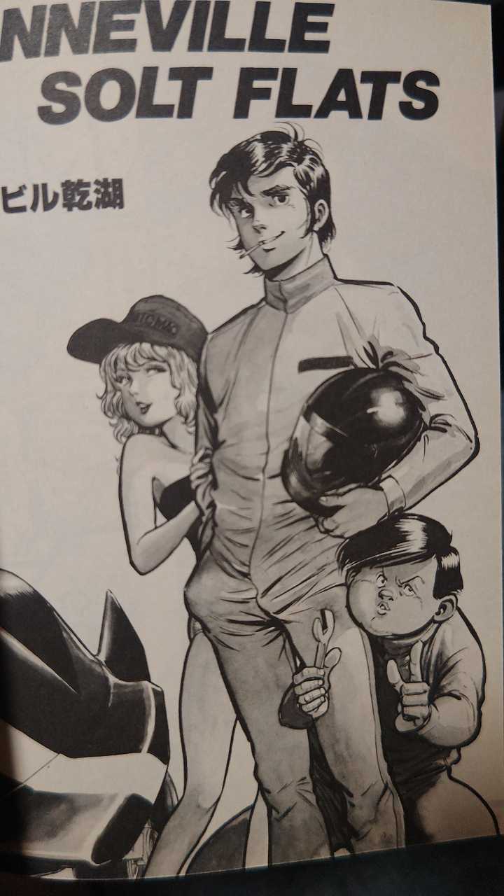 ネットで御厨作品一覧を検索していたら1980年の『Weekly漫画アクション』に「BONNEVILLE SOLT FLATS」という作品名がありました。月号までは不明でしたし、内容もバイク作品かどうかは不明ですが。でも、ボンネビル・ソルトフラッツといえば、四輪と二輪の最高速チャレンジの競技として有名なユタ州の地名なので、もしかすると貴方がアップされていた1枚はこの作品なのかなと想像しました。